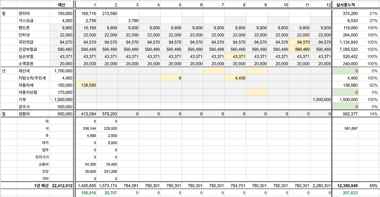 579,293원. 역대 최소 생활비를 달성할 뻔했으나 마지막에 병원비가 발생했고, 그럼에도 불구하고 예산 안에서 마감했다. 휴. 실손 보험료가 너무 올라 비싸다고 생각했는데, 벌써 1년 치 보험료를 훌쩍 넘겨받았으니 이걸 좋아해야 하나 슬퍼해야 하나.