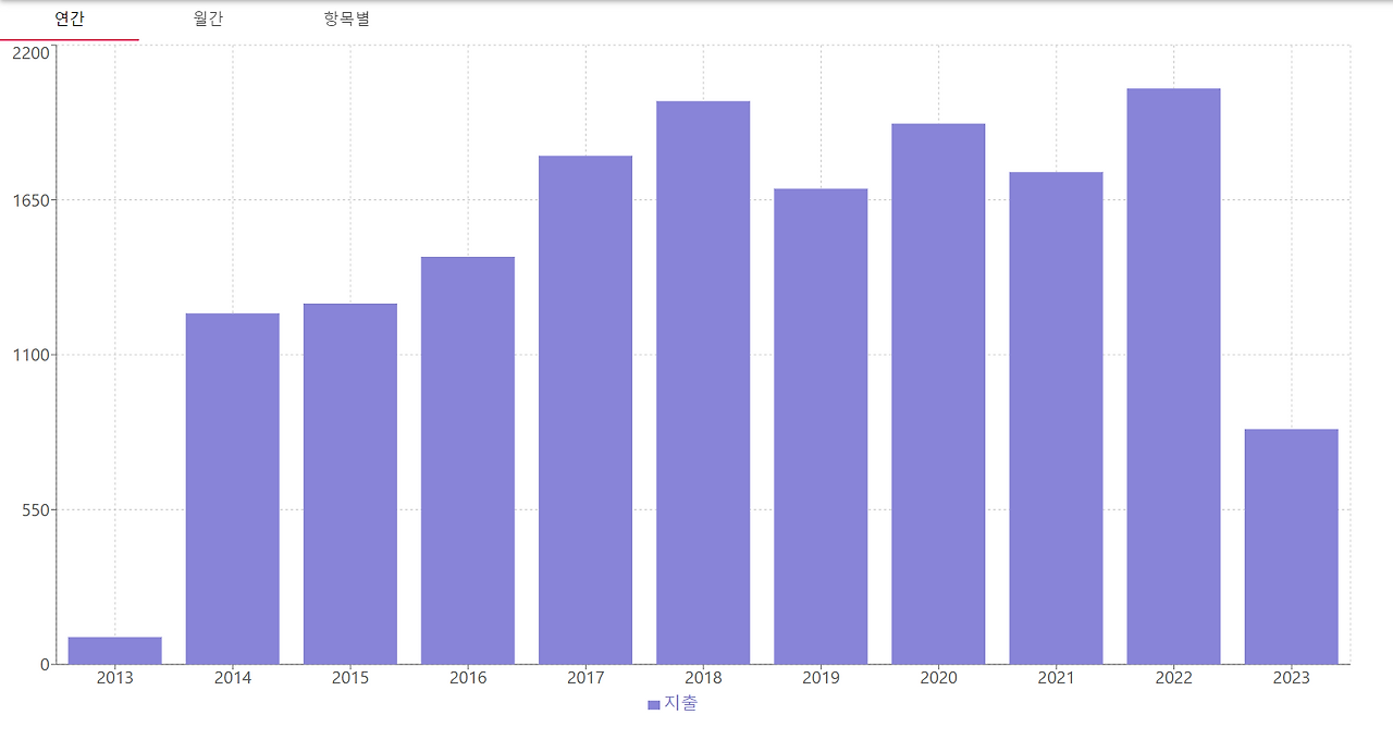 연간 생활비 추이를 보면 누락된 항목을 포함하더라도 2,500만 원 안쪽이다. (2023년 6월 21일 데이터)