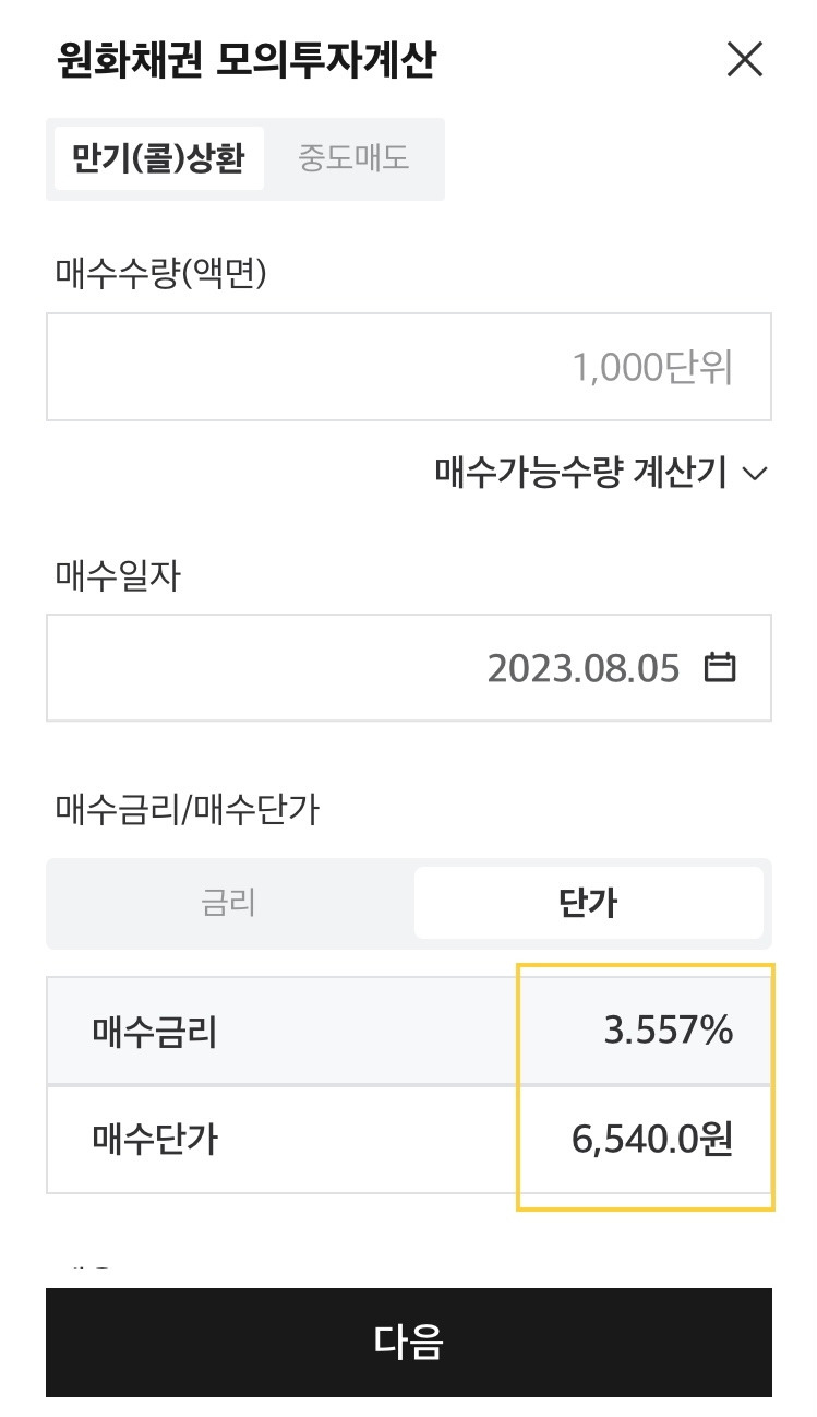한편, 매수단가에 따른 '매수금리'는 매수호가 옆에 나오는 '매수수익률'과 동일하다. 같은 것을 다른 이름으로 부르는 것뿐이다. 매수금리 = 매수수익률.