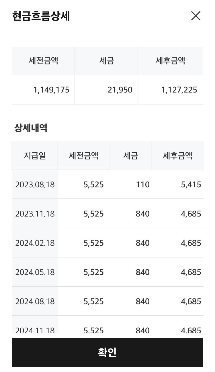 - 이를 다시 예금환산수익률(세전)로 변환하면 (4.1575% / (1-0.154)) = 4.914% 가 되는 것이다.