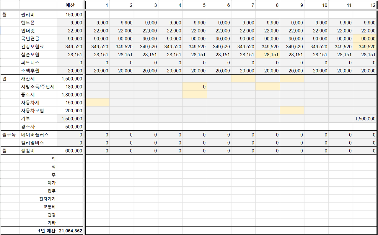 24년 지출 예상액은 2천1백만 원 선이다. 조금 넉넉하게 할당한 항목도 있으니, 특별한 일이 생기지 않는다면 2천만 원으로 살아보는 것도 가능하지 않을까 내심 목표하고 있다. 지출 내역은 매달 8일에 업데이트할 예정이다.