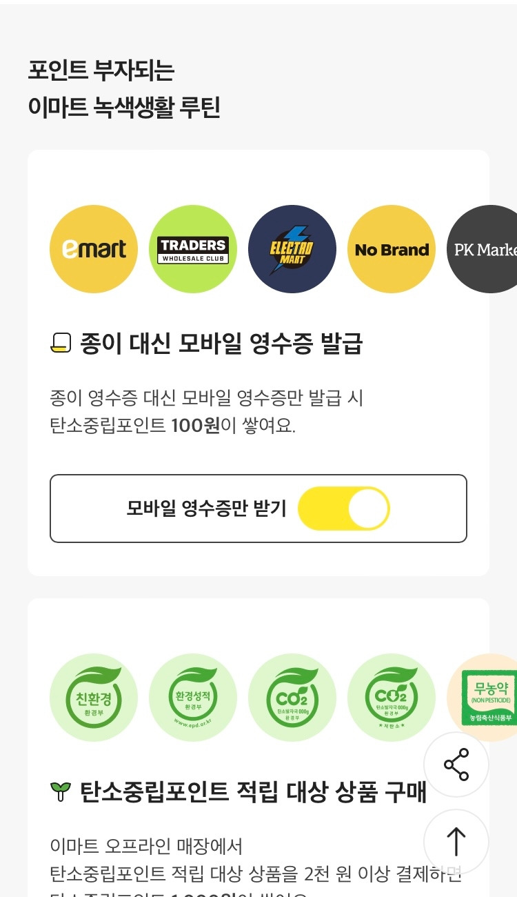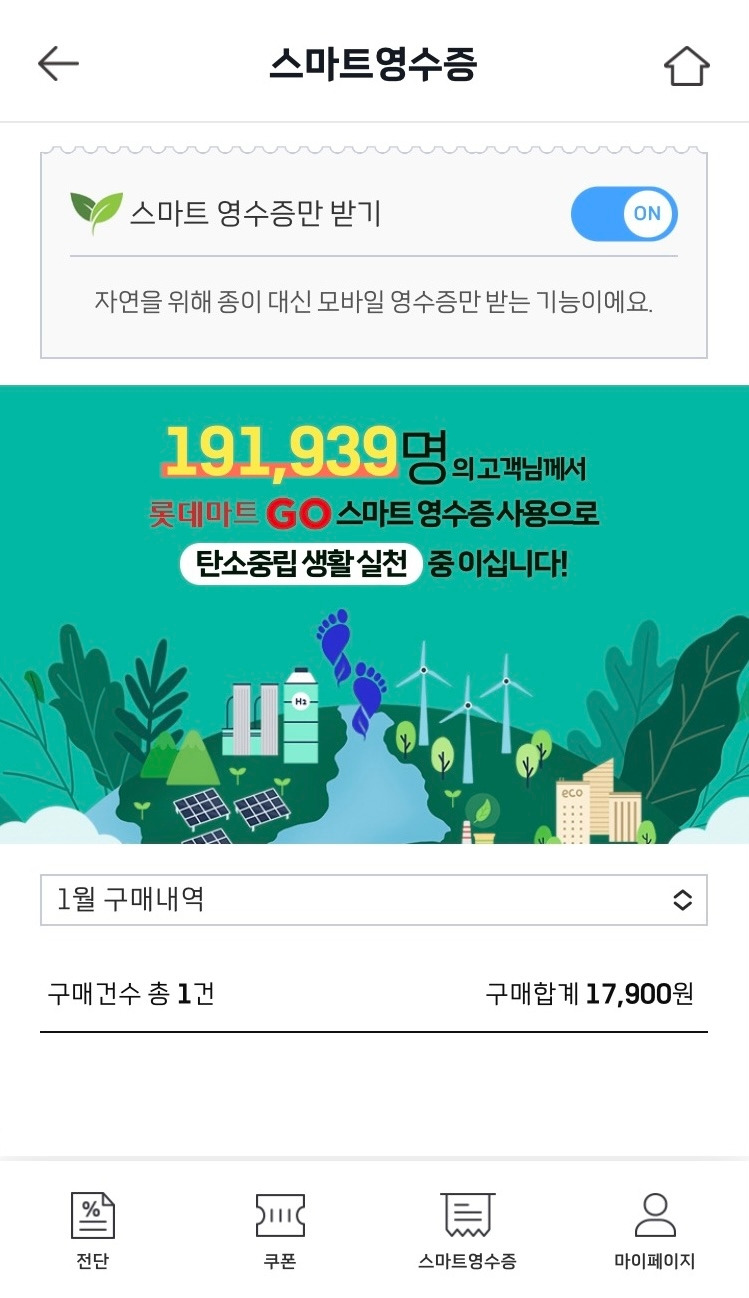 평상시 스탬프나 포인트 적립을 잘 안 하는 편인데, 탄소중립포인트를 받겠다고 앱을 우르르 설치하는 게 좀 이상하긴 하다. 하지만 왠지 모르게 동기부여가 되고 무엇보다 계산대에서 매번 ‘영수증 필요하세요?’ ‘아니오.’를 반복하지 않아도 될 것이 좋다.