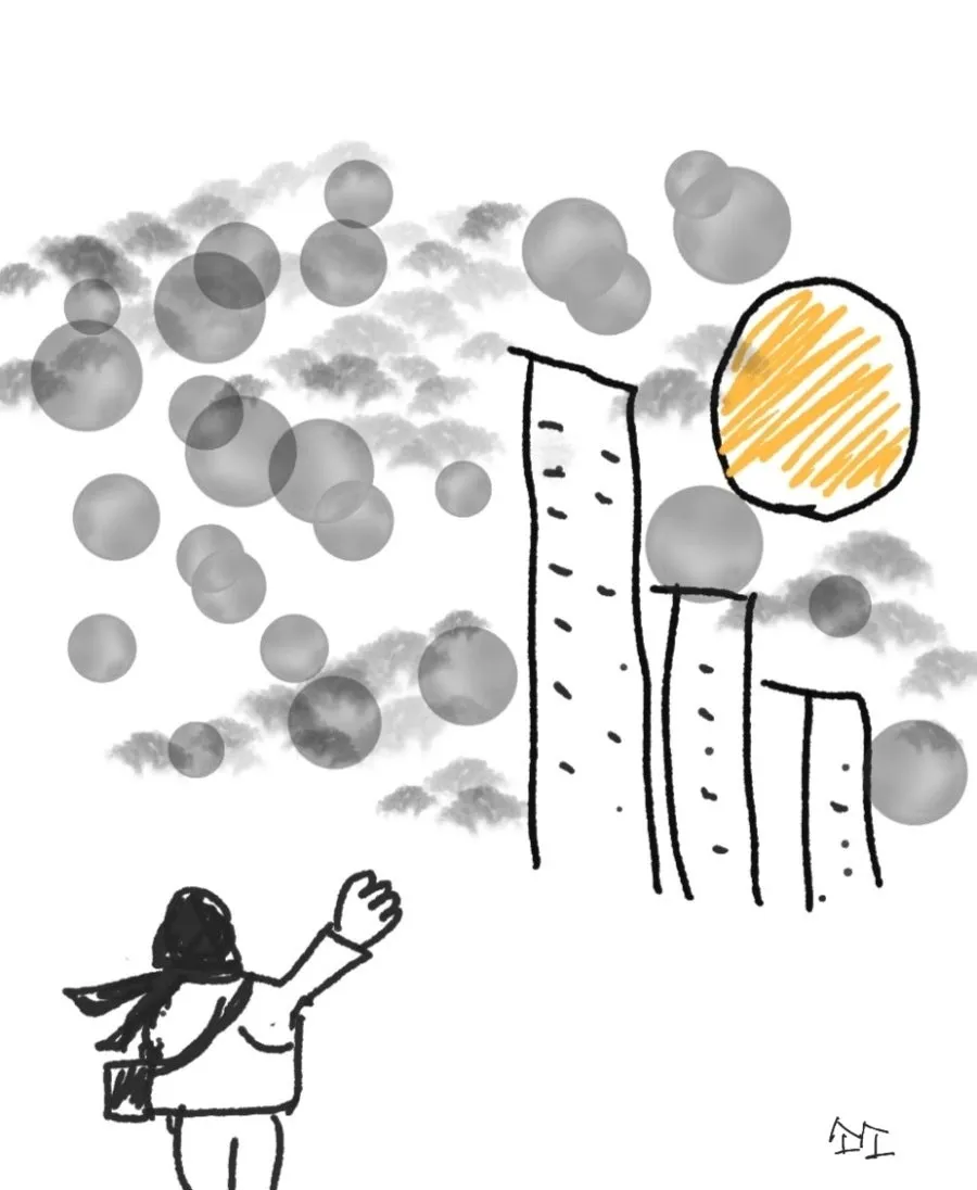 출근하는 새벽 길에서,퇴근하고 있는 달을 만났다.하루를 시작하는 나를, 조용히 응원해준다. ⚘️<帰宅する月>出勤する早朝の道で、帰宅していく月に出会った。