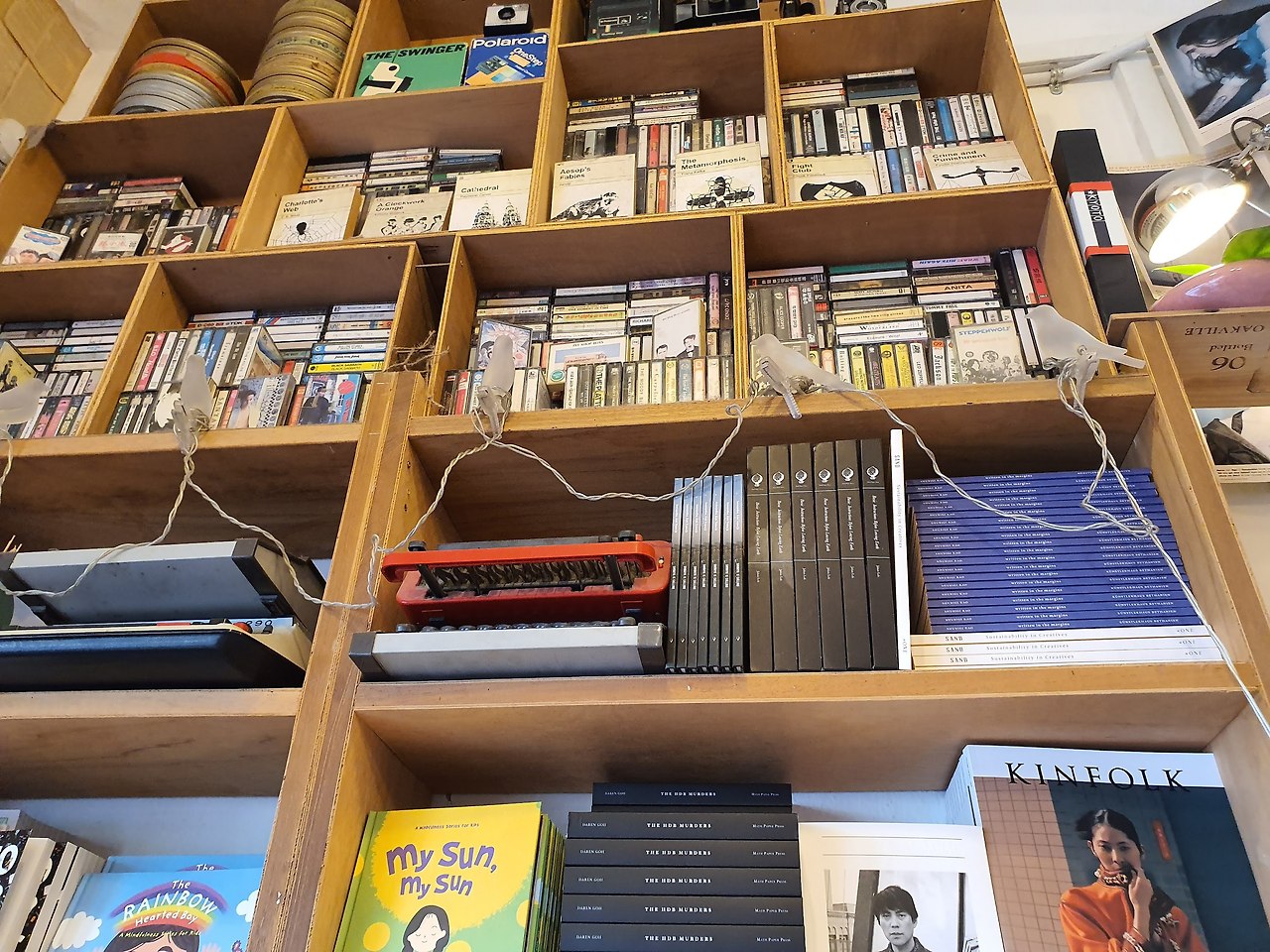 건물의 외관은 뭔가 빈티지하면서 예술적인 느낌이 들었다. 문 앞에 있는 책 자판기가 시선을 사로잡는다. 안으로 들어가니 삭막한 바깥세상과는 다른 책의 온기가 마음을 따뜻하게 만들어 준다. 낯선 땅에서 접한 독립서점. 들어가기 전 뻘쭘했던 것도 잠시, 책장과 바닥을 메우고 있는 다양한 책들을 구경하는 재미에 빠져들었다. 질서 정연하고 깔끔하게 장식되어 있는 것보다 느낌 가는 대로 툭툭 꽃아 있는 책들과 소품들이 더 멋스럽다. 책장을 파티션으로, 뒤편 좁은 공간에는 예쁜 그림이 그려져 있는 성냥개비들이 가지런하게 놓여있다. 빈티지한 타자기들과 손때 묻은 아기자기한 소품들, 빼꼭하게 꽂아있는 CD들이 낯선 이의 방문을 반갑게 맞이해주는 것 같다. 그래, 이런 것들이 독립서점만이 가지고 있는 매력이지.