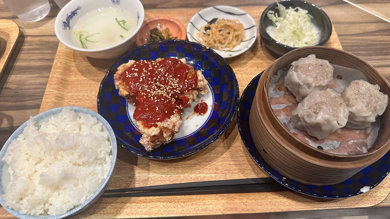 히로시마역을 구경하다 가성비가 괜찮아 보이는 정식 세트가 있어 시켰보았다. 일본에서 종종 먹던 가라아게가 물려있던 참인데, 메뉴판에 한국식 양념치킨이라고 쓰여 있어서 시켜봤다. 그런데 우리가 기대했던 맛과는 많이 달랐다. 우리나라처람 매콤 달콤한 양념치킨 소스가 아닌 정말 그냥 짠 고추장소스를 올려 준다. 소스가 매우 짜기 때문에 덜어내고 조금씩 찍어 먹었다.