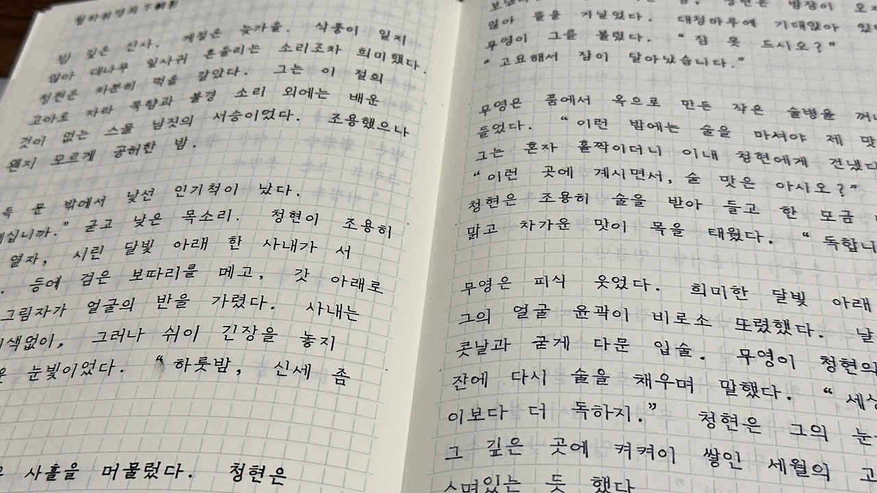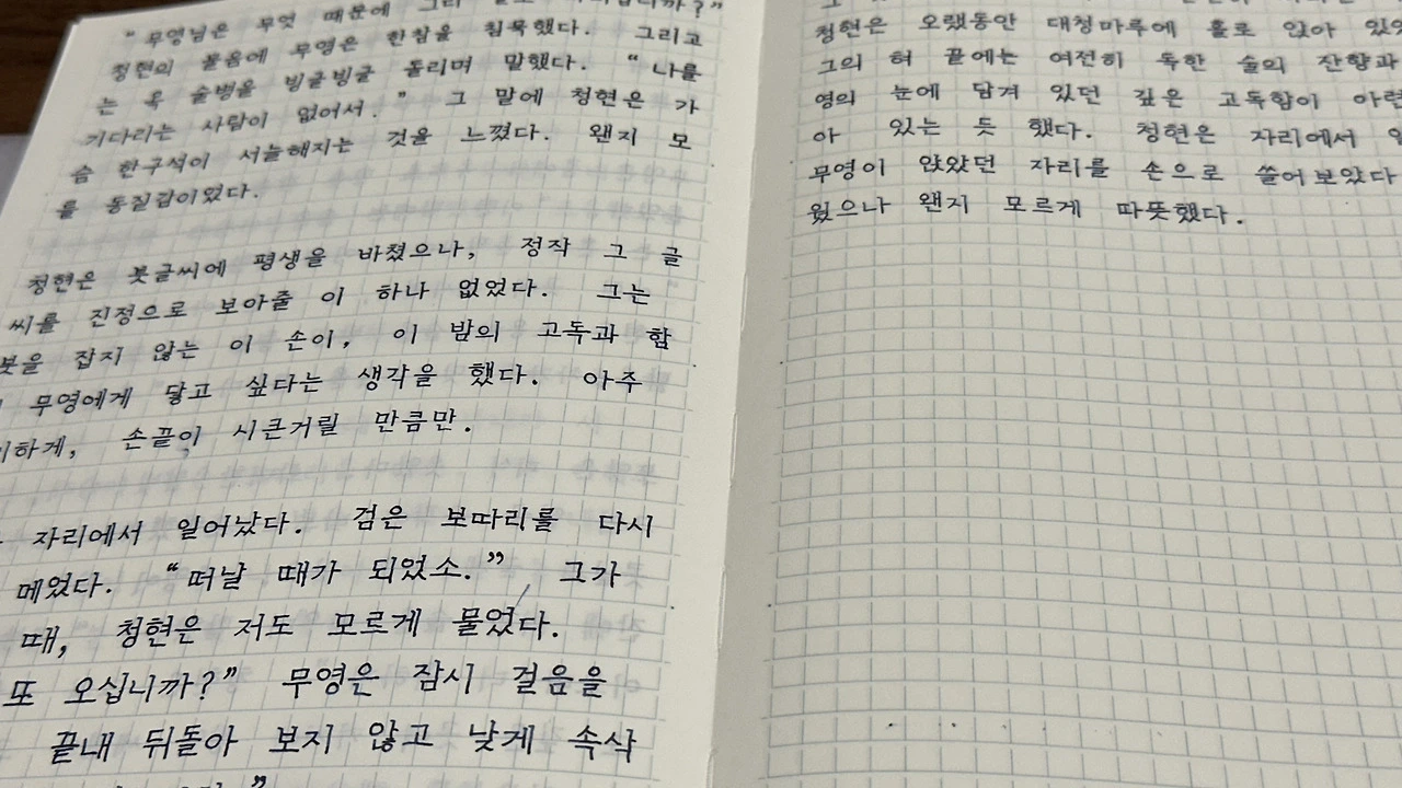 청현은 붓글씨에 평생을 바쳤으나, 정작 그 글씨를 진정으로 보아줄 이 하나 없었다. 그는 붓을 잡지 않는 이 손이, 이 밤의 고독과 함께 무영에게 닿고 싶다는 생각을 했다. 아주 희미하게, 손끝이 시큰거릴 만큼만.