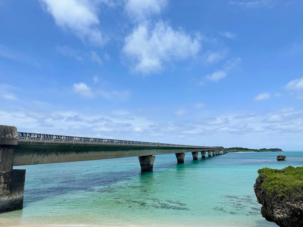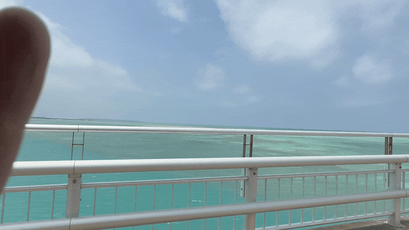 이라부 섬에 가기 위해서는 이라부대교를 건너야 한다. 이라부대교는 2015년 1월 31일에 개통된 다리로 길이가 3,540m인데 통행료를 받지 않는 다리 중에서는 일본에서 가장 긴 다리라고 한다. 중간에 오르막 길이 두 번 있는데 제일 큰 오르막은 경사도가 5%라서 꽤 갸퍄르다.