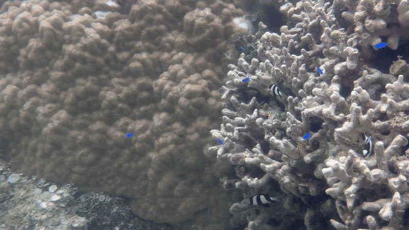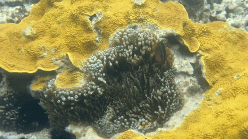다가가서 보니 산호 사이로 말미잘이 있었고 그 앞을 니모라고 더 잘 불리는 흰동가리가 지키고 있었다. 스노클링을 꽤 자주 갔었는데도 말미잘에 흰동가리는 처음 본 것 같다. 집에 데려가 키우고 싶다는 생각이 들었는데, 사람들의 마음은 다 비슷한 것일까. 특히 동남아에서 폭탄을 터트리거나 청산가리를 뿌려 기절시켜 잡는 때가 많다고 한다. 다행인 것은 인공번식에 성공하여 이제는 자연에서 남획되는 경우는 많이 줄었다고 한다. 자연에서 귀여웠던 애들은 그냥 자연에 있는 것으로 해야지 집에 전시해 놓으면 애들이 사라진다.