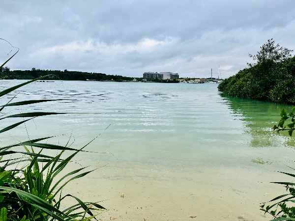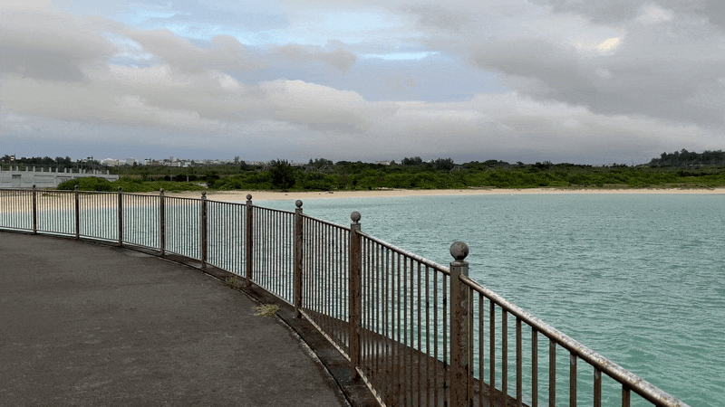 렌터카를 받아 숙소로 가 짐을 풀었더니 시간이 애매했다. 그냥 저녁까지 보내기도 그렇고 본격적으로 어딜 가자니 체력이 부담되었다. 게다가 날씨 요정인지 요괴인지(강쉡)가 있음에도 비가 여전히 부슬부슬 내리고 있었다. 그래서 우리는 그냥 숙소에서 길을 건너면 바로 있는 공원에 산책을 나가기로 했다. 공원의 이름은 무려 ‘파이나가마 우미소라 스코야카 공원’이라는 엄청나게 많은 글자를 읽어야 하는 곳이었다. 이름 글자 수만큼이나 이곳은 굉장히 넓고 잘 정돈된 공원이었는데, 그에 비해 사람은 거의 없었다. 한 시간 남짓 산책하는 내내 한 두 명이나 봤을까.