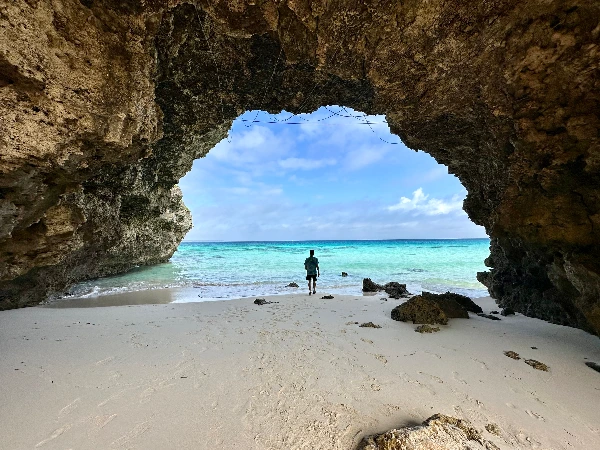 스나야마 비치의 가장 유명한 포토스폿은 역시 아치형 바위다. 보통 이런 식의 바위는 다들 '코끼리바위'라고 부르는 것 같은데, 코끼리 바위는 전 세계에 58,000개쯤 있는 것 같다. 스나야마 비치의 다른 코끼리 바위보다 특별한 이유는 미야코블루와 어우러져 비현실적인 분위기를 주면서 심지어 주변에 사람도 별로 없기 때문일 것이다.