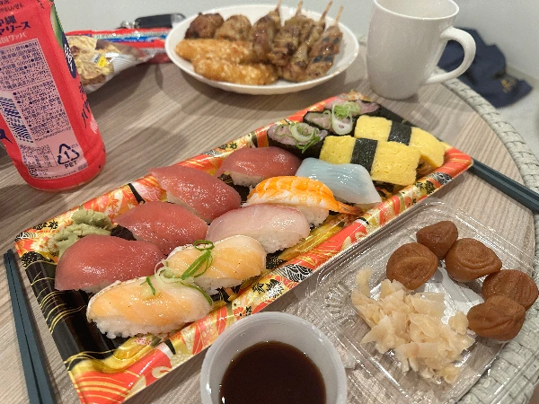 유명한 맛집을 가면 좋겠지만 일본의 대부분 식당은 점심만 하고 닫고 저녁에 문을 연 곳은 이자카야가 많았다. 이자카야에서 반주라도 하려고 맥주 두 잔을 시키면 웬만한 음식값보다 비쌌다. 반면 맥스밸류에서 초밥에 튀김, 꼬치, 맥주, 사와 칵테일을 사서 밥상을 떡하니 차려놓으면 두 명에서 2~3천엔 정도로도 푸짐하게 즐기고 남는다. 맥스밸류는 초밥을 사면 소량으로 포장된 초생강과 와사비를 셀프로 챙겨갈 수 있었는데, 이 역시 훌륭한 안주거리가 되었다. 다만 너무 많이 챙겨가면 살짝 눈치가 보일 수도 있겠다.
