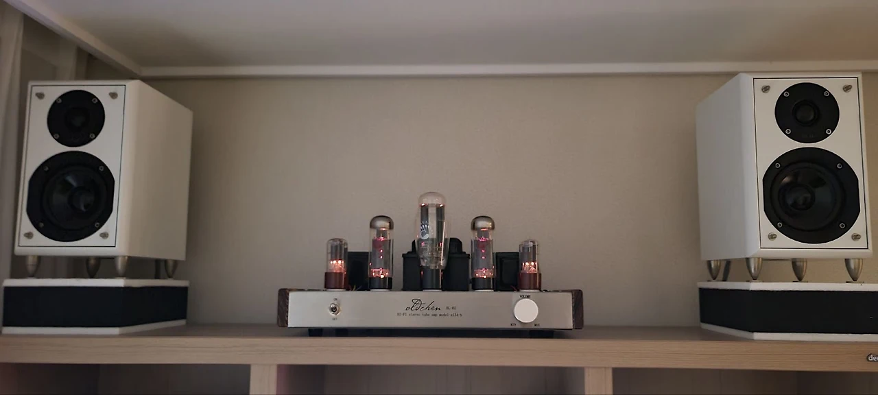입문용으로 중국산 TR 앰프(SMSL ad18)와 스피커(Eltax Monitor1)를 사용했는데, 음악을 좀 오래 들을 때면 소소가 거슬린다고 성화해서 좀 덜 거슬렸으면 하는 바람을 담아(사실 진공관을 써보고 싶었다) 알리발 진공관앰프(Oldchen EL34)로 기변을 했다. 소소의 성화를 잠재우는 데는 실패했지만, 내 귀에는 대만족이라 지금까지 잘 사용 중이다.
