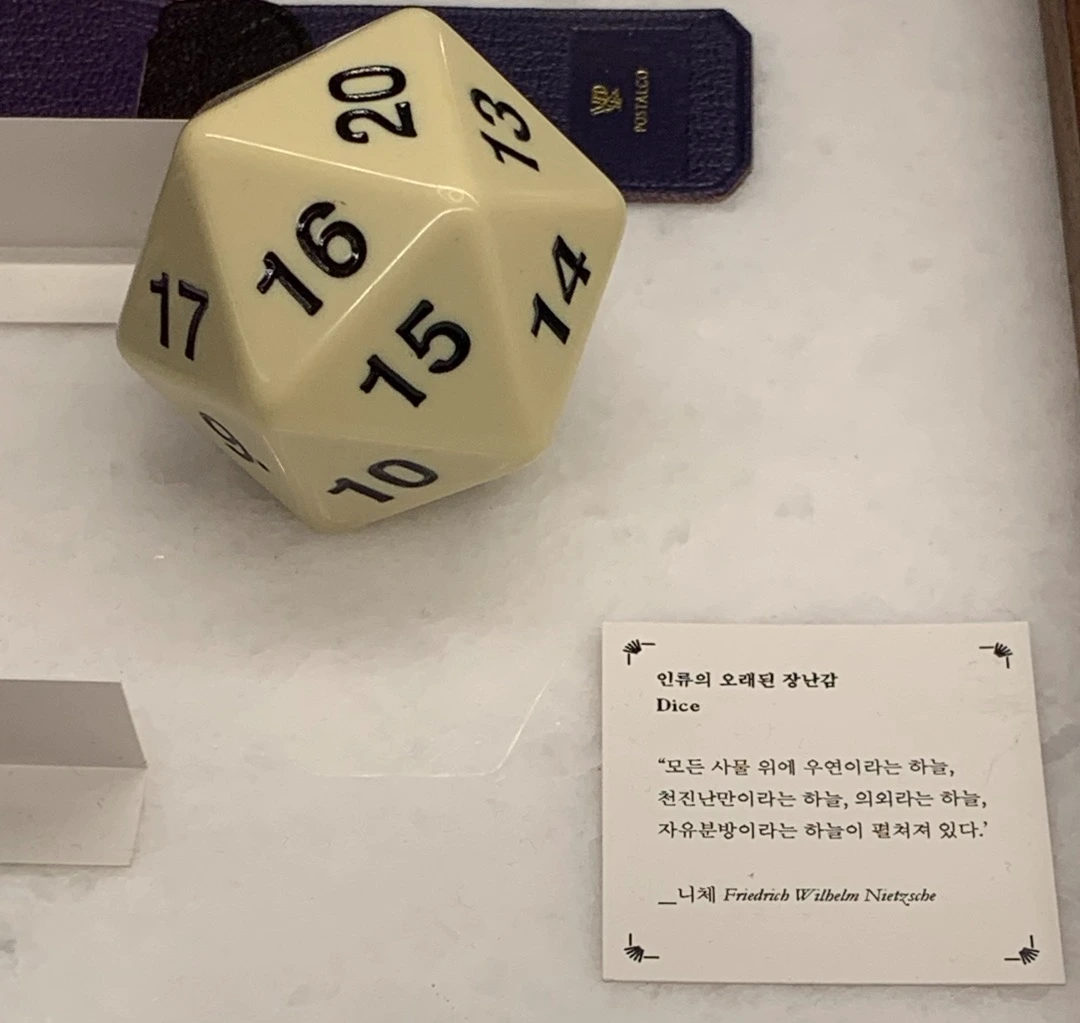 주사위를 놀이의 도구로만 보면 주사위가 아름다울 필요까지는 없습니다. 하지만 역사적으로 인류가 어떤 결정을 하늘의 우연에 맡길 때 사용했던 도구로 주사위를 보게 되면, 책상 위에 올려둘 만한 아름다운 오브제로서의 가치가 생깁니다.