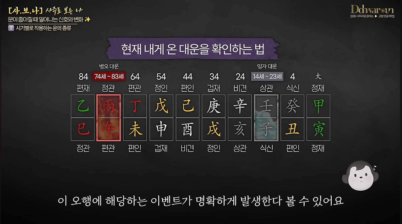 이렇게 사주를 긍정적, 능동적으로 해석하는 유튜브와 젊은 역술가 분들이 요즘 많습니다. 하지만 생소한 용어와 한자가 많고, 글자들 간의 상관관계를 분석해야 하는 어려운 내용을 가장 쉽게 설명해 주는 사주 콘텐츠는 도화도르라고 생각합니다.