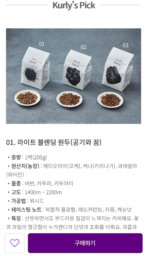 Kurly's Pick: 중량, 형태, 포장 상태, 맛, 향, 질감, 식감 등 상품의 필수 정보 전달