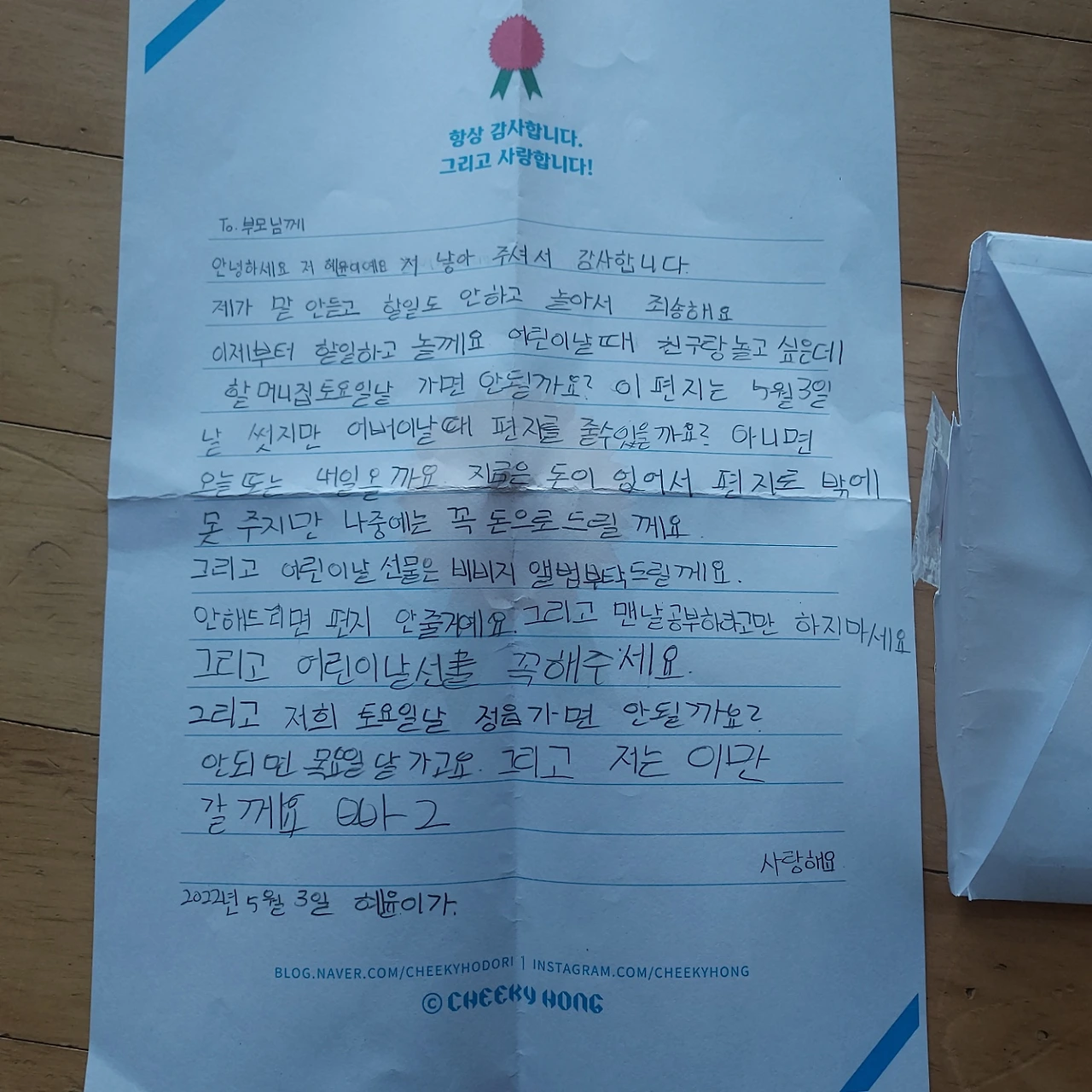 2022. 5. 5. 어린이날, 아빠가 보냄.