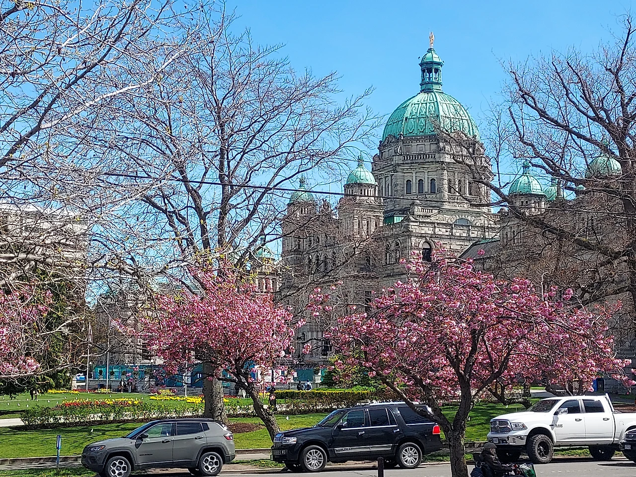 <한국의 벚꽃은 4월 초에 졌습니다. 빅토리아의 벚꽃은 제가 캐나다에 도착했을 때 활짝 폈습니다.