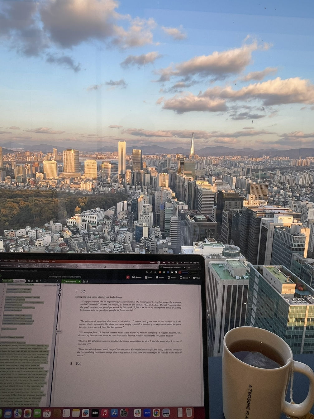 연구 외적으로도 정말 좋았다. 밥이 너무 맛있었고(감히 국내 1위라고 생각한다), 서울 시내가 내려다보이는 환상적인 뷰가 있어 강남 일대를 보며 회의할 때면 괜히 내가 뭔가 된 것 같은 기분이 들었다. 사람들도 친절했고, GPT 관련 연구를 진행할 때는 거의 천만 원어치 API 비용을 회사에서 전액 지원해주었다. 정말 감사한 일이었다.
