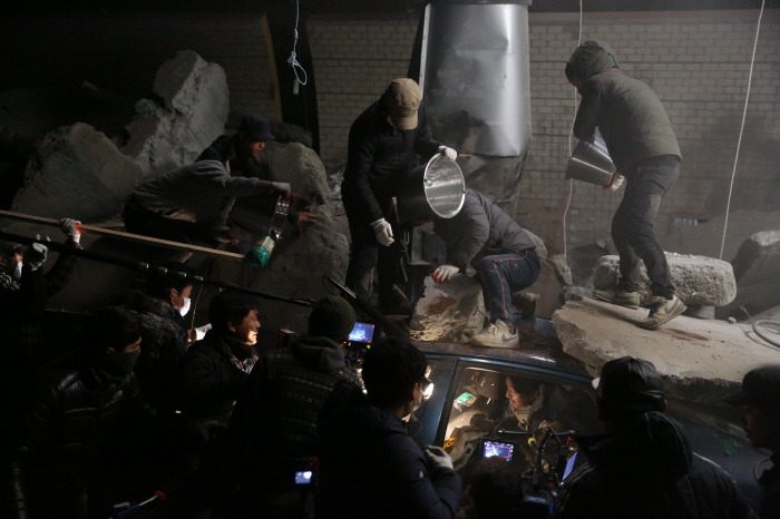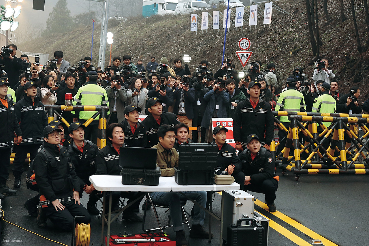 그러나 그런 접근을 제한다면 <터널>의 본질적인 재미는 희극과 비극이 얽혀있다는 곳에서 출발한다. 굳이 오달수를 사명감 있는 구조요원으로 등장시킨 것도 그런 요인 때문이다. 원래 무거운 이미지의 배우가 코믹한 장면을 만드는 것과 존재 자체가 이미 유쾌함으로 증명된 배우가 묵직한 역할을 해내는 것. 두 가지에는 근본적인 차이가 있다. 희극에서 비극을 빚는 것과 비극에서 희극을 골라내는 것. <터널>은 오달수를 통해 전자에 무게를 둔다. 물론 하정우의 정수가 가진 성격도 그것을 보여준다.