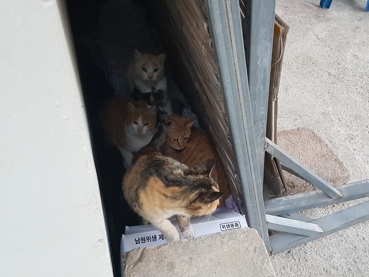 박스에 앉아서 나를 빤히 쳐다보는 아이들을 보았다. 항상 있던 곳도 아닌데, 느낌이 사뭇 다른 이유는 무엇일까? 아마도 그것은 내가 마음을 조금씩 열었기에 고양이들이 보였던 것은 아닐까?