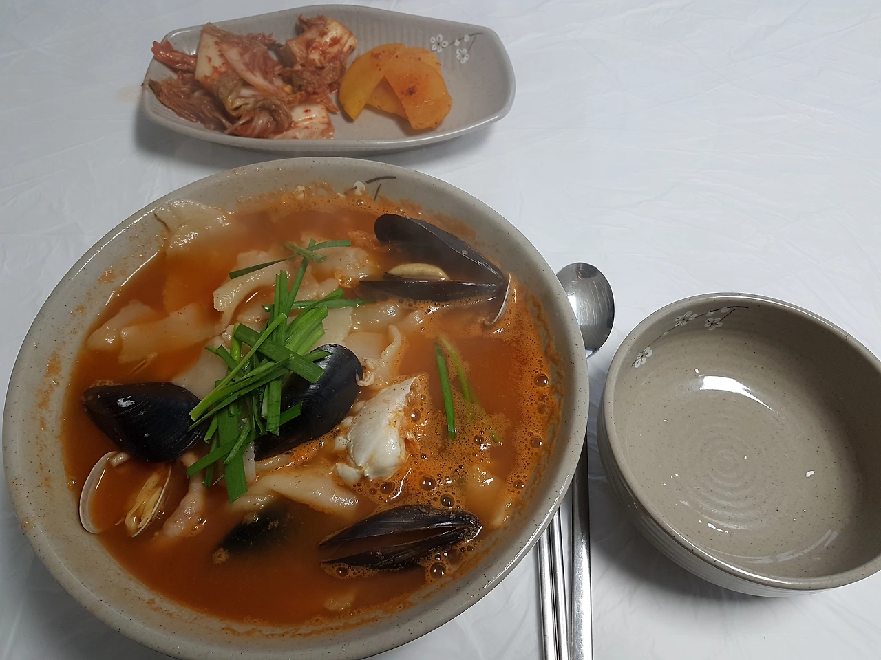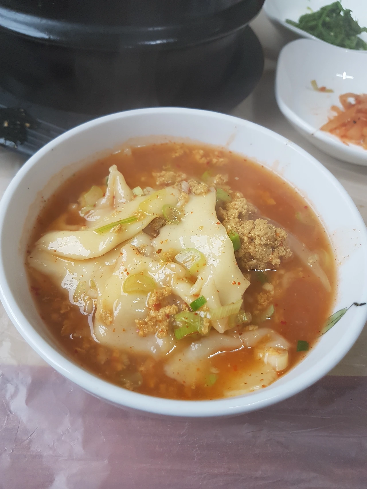 혹시나 이 글을 읽은 누군가가 내가 먹는 단골 수제비 집에서 식사를 할 기회가 있으면 살짝 물어봐도 될 것 같다. 혼자 와서 얼큰 해물 손수제비 먹고 가는 남자 글을 보고 왔는데, 아직도 먹으러 오는지? 그럼 아마 방금도 곱빼기 먹고 갔다고 웃으며 답하지 않을까?