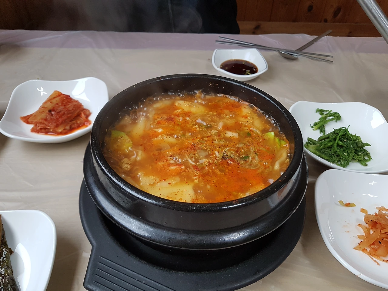 항상 누군가 오면, 출발 전에 주문을 하고, 이동하며 군침을 흘렸다. 묘하게 달짝지근한 맛이 매력이다. 그러면서도 칼칼하고 부드러운 느낌은 수제비 중에 단연 최고 아닐지. 겸사로 다슬기 전에 막걸리 한 잔을 마시면 딱이겠는데, 운전해야 해서 그건 못해봤다.