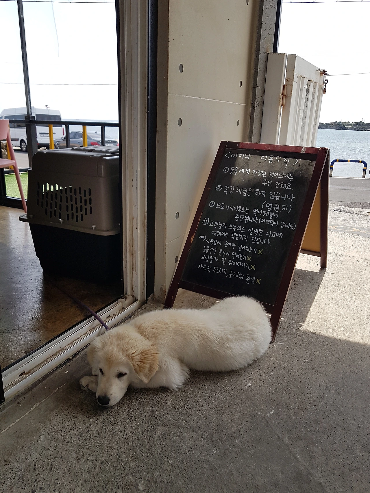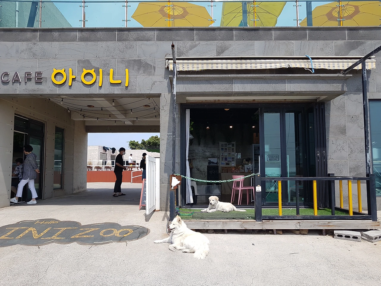 ‘아이니’ 동물 카페답게 입구부터 귀여운 강아지들이 손님 발길을 잡았다. 그리고 안을 살짝 보니, 작은 동물원처럼 귀여운 아이들이 여럿 보였다. 주인장의 이야기를 들어보니, 사육사 출신으로 우도에 작은 동물 카페를 운영하게 되었고, 이곳에 동물들은 파양 당하거나 아픈 아이들을 돌보면서 지낸다고 했다. 그래서 그런지 동물은 만질 수 없다. 다만 먹이를 주는 체험은 가능해서 이미 덩치 크신 우락부락한 형님이 혼자서 조심스럽게 먹이를 주고 있었다. 그것도 아주 조심스럽고, 흐뭇하게 말이다.