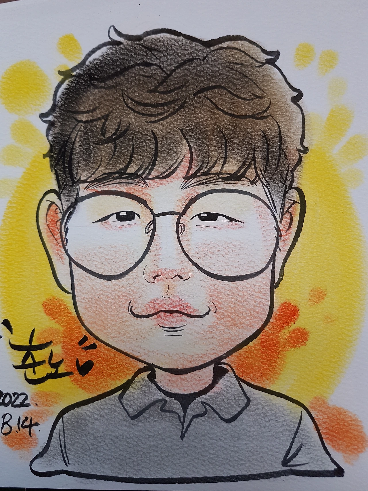 간혹 축제의 공간 한쪽에서 그림을 그리는 작가님들을 보고는 했는데, 한 번은 해보고 싶었다. 그리고 오늘에서야 시도해봤다. 10분을 어정쩡한 시선을 느끼면서 앉아 있다가 결과를 보니 무척 밝은 인상이라서 마음에 들었다. 잘생긴 남자 작가님이 날 너무 귀엽게 그려 주셨는데, 마흔인데 너무 어려 보인다고 말하니, 립서비스로 절대 그리 보이지 않는다고 하셔서 내심 기분 좋게 결제를 했다. 아마도 장사의 내공이 좀 높은 분 같았다.