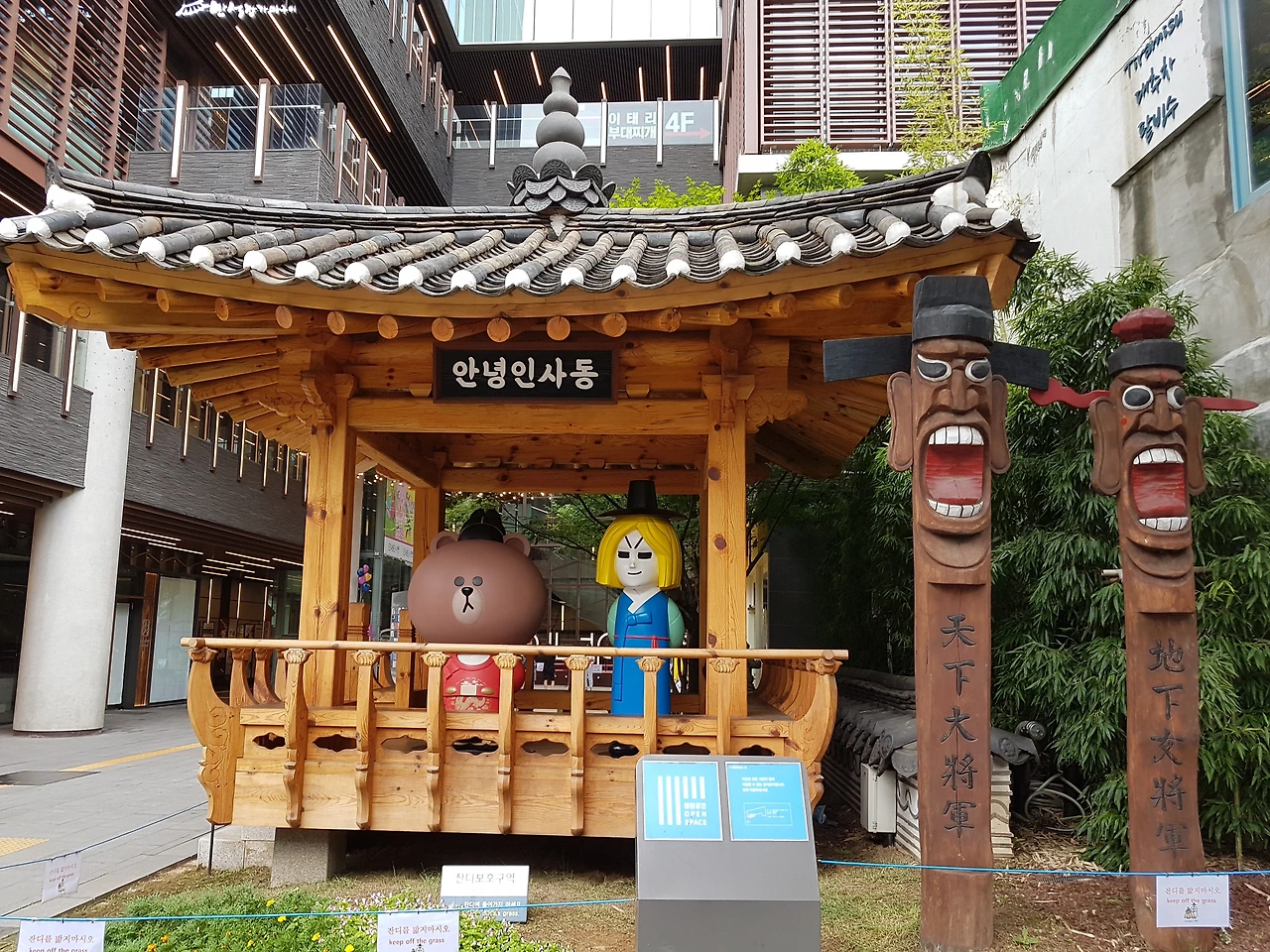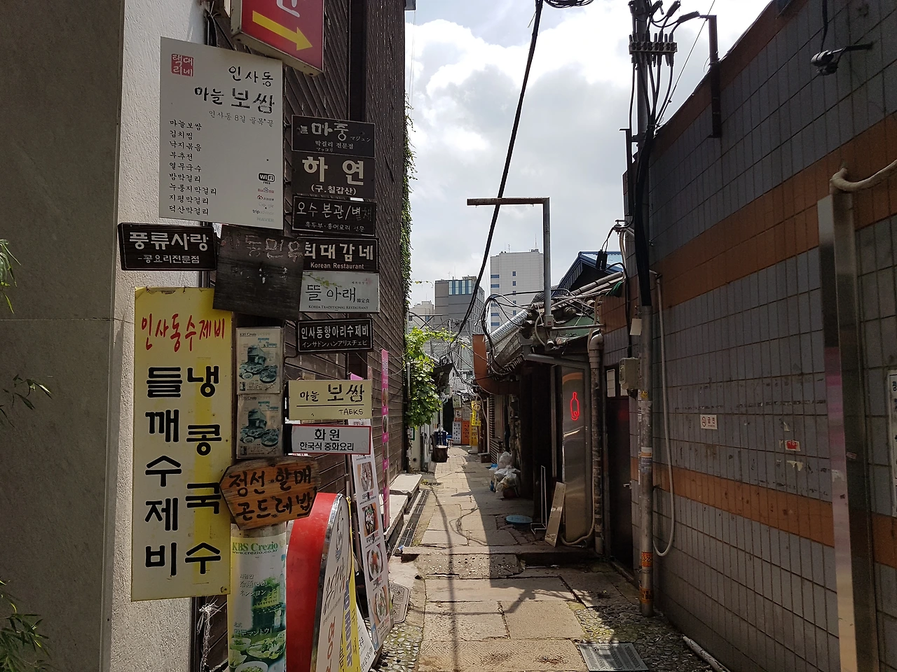 출구를 벗어나 직선으로 쭉 걷다가 다시 사선으로 된 인사동 거리를 걸었다. 오전이지만 사람들이 붐비기 시작했다. 아마 인사동은 가장 한국적이면서도 다양한 문자가 보이는 다국적 공간이 아닐지. 모든 설명이 각종 언어로 설명되어 있어서 나름 외국인들 틈에서 해외를 온 기분도 느낄 수 있었다.