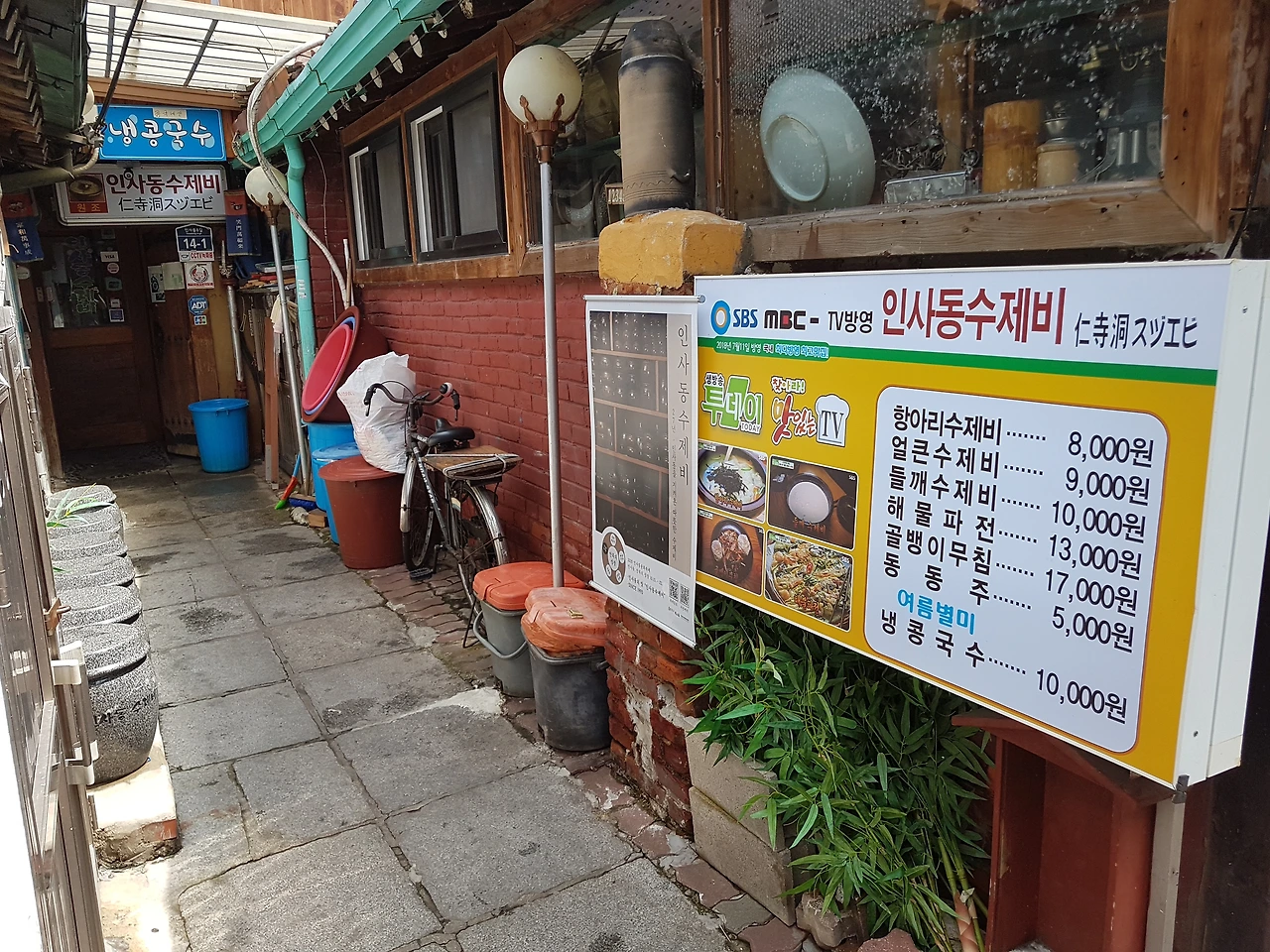 이번의 주메뉴인 ‘인사동 항아리 수제비’를 먹으러 골목을 찾아 들어갔다. 찾아가는 길과 입구가 신비롭기도 하지만, 막상 안에 들어가면 더 아담한 기분이 들었다. 잠시 시골에서 장사 잘되는 식당에 온 기분이랄까?