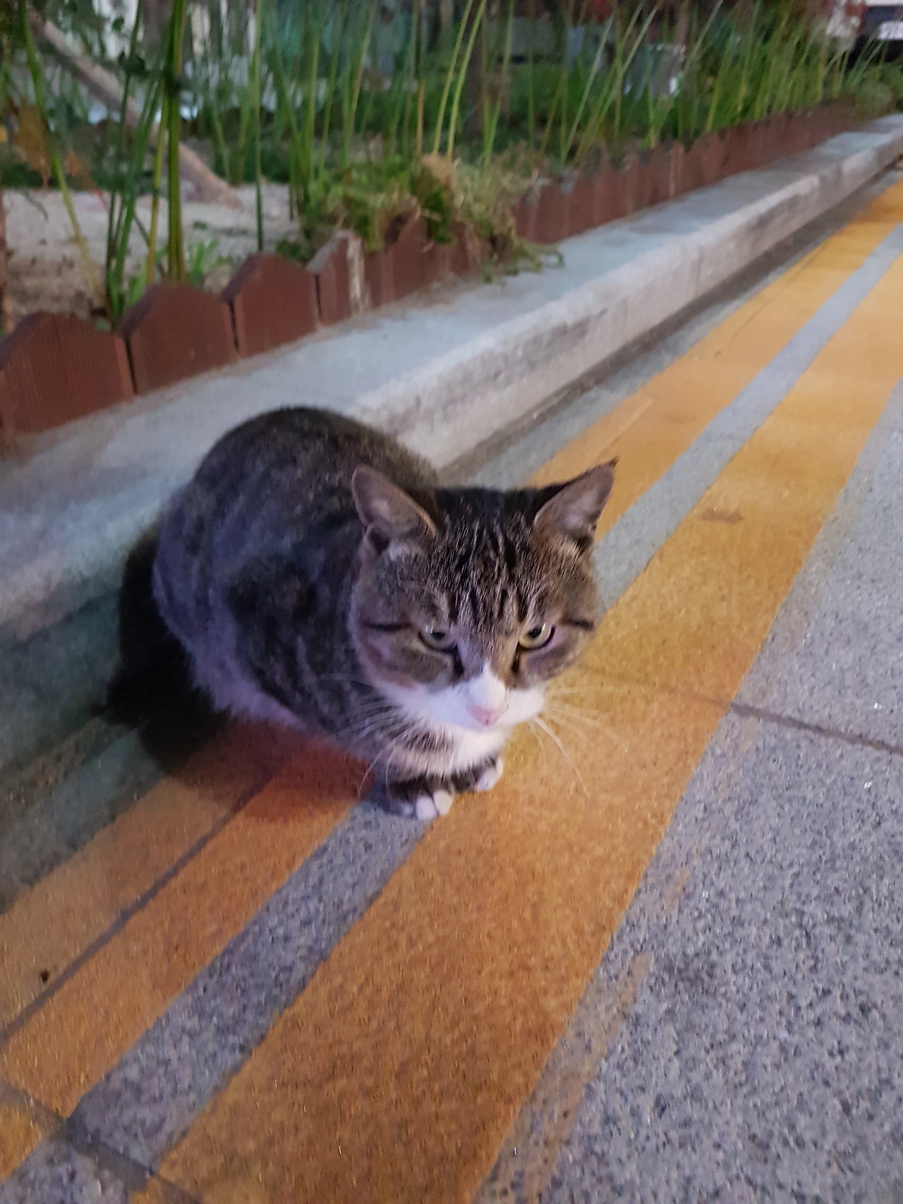 그런데 고양이 한 마리가 눈에 들어왔다. 둥그스름한 얼굴에 고등어가 자리를 잡고 식빵을 굽고 있었다. 원래는 사진만 찍고 지나치려고 했는데, 조심스럽게 다가가서 가까이 찍어도 보았다. 그래도 가만히 있길래 손으로 머리를 쓰다듬었다. 오랜만에 느껴보는 고양이 촉감이다. 그렇게 한동안 고양이와 눈으로 인사하다가 다시금 발걸음을 옮겼다.