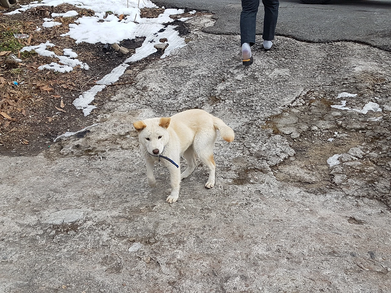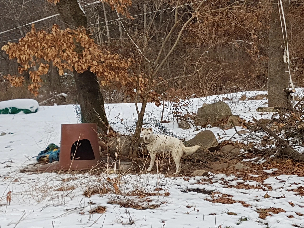 아직은 눈이 녹지 않은 미끄러운 길. 그리고 눈밭을 무대로 뛰어다니는 백구가 손님을 맞이하는 것이 좀 유난스럽지만, 그 모습도 배부른 뒤에 본 후라서 너그럽게 손을 내어줬다. 자기 딴에는 반갑다고 하는 행동인데, 살짝 크다고 물러나면 동물이라도 무안하겠지?