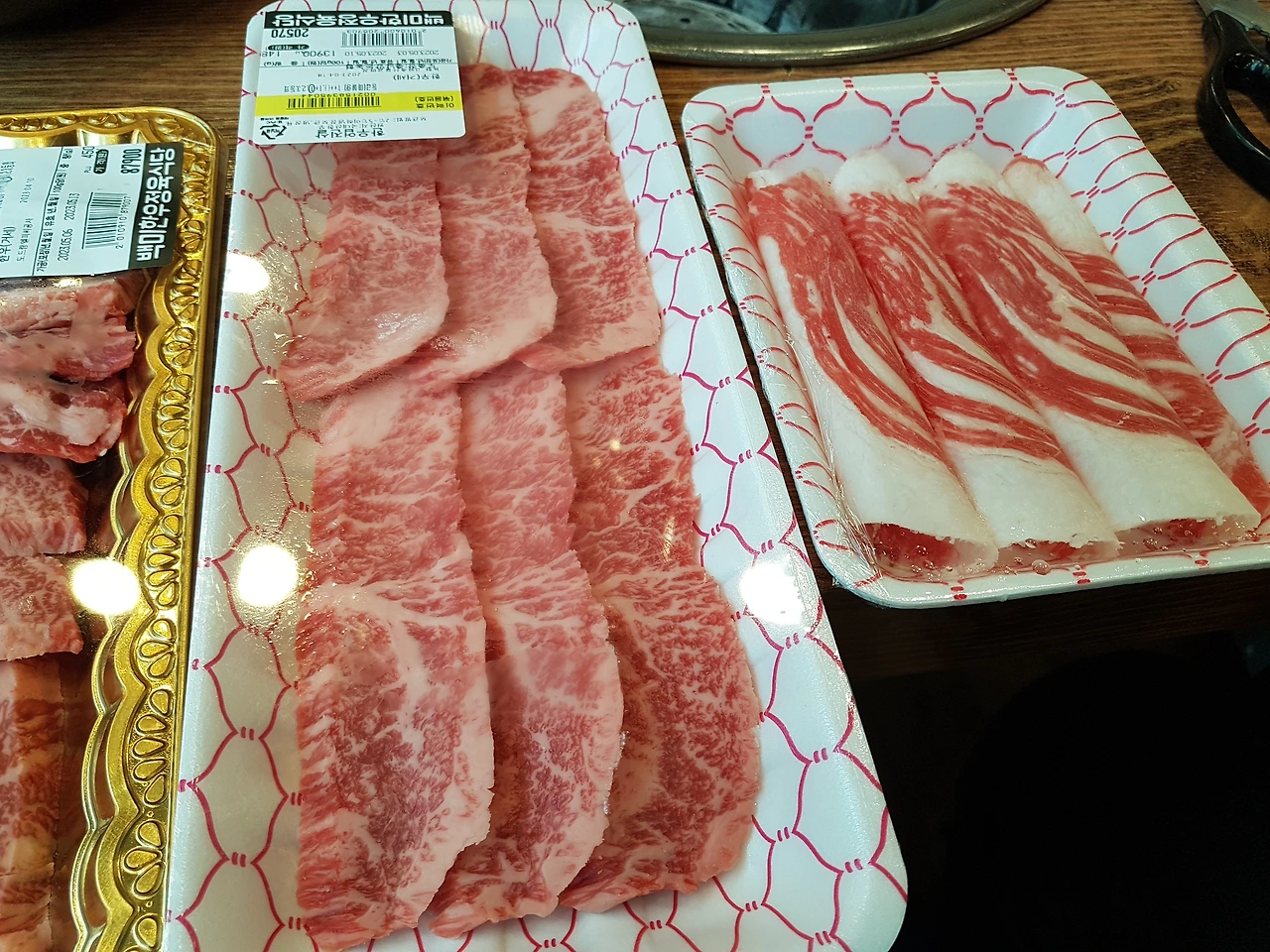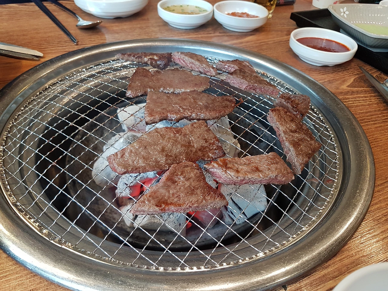 일단 우리 모임의 철칙은 잘 먹자였다. 입구에 고기를 구매하고는 2층 식당으로 들아가는 구조인데, 일반 정육점 식당보다는 젊은 느낌이었다. 특수 부위를 그리고 젤 좋아하는 살치살과 각종 팩을 들고 2층에 가서 숯불에 먹어본 놈이 고기를 굽는다. 서민 음식은 아닌 이른바 한우이다. 회비로 먹기에 가능한 씀씀이로 고기를 굽고 또 구워서 먹고, 다시금 잔을 들었다.