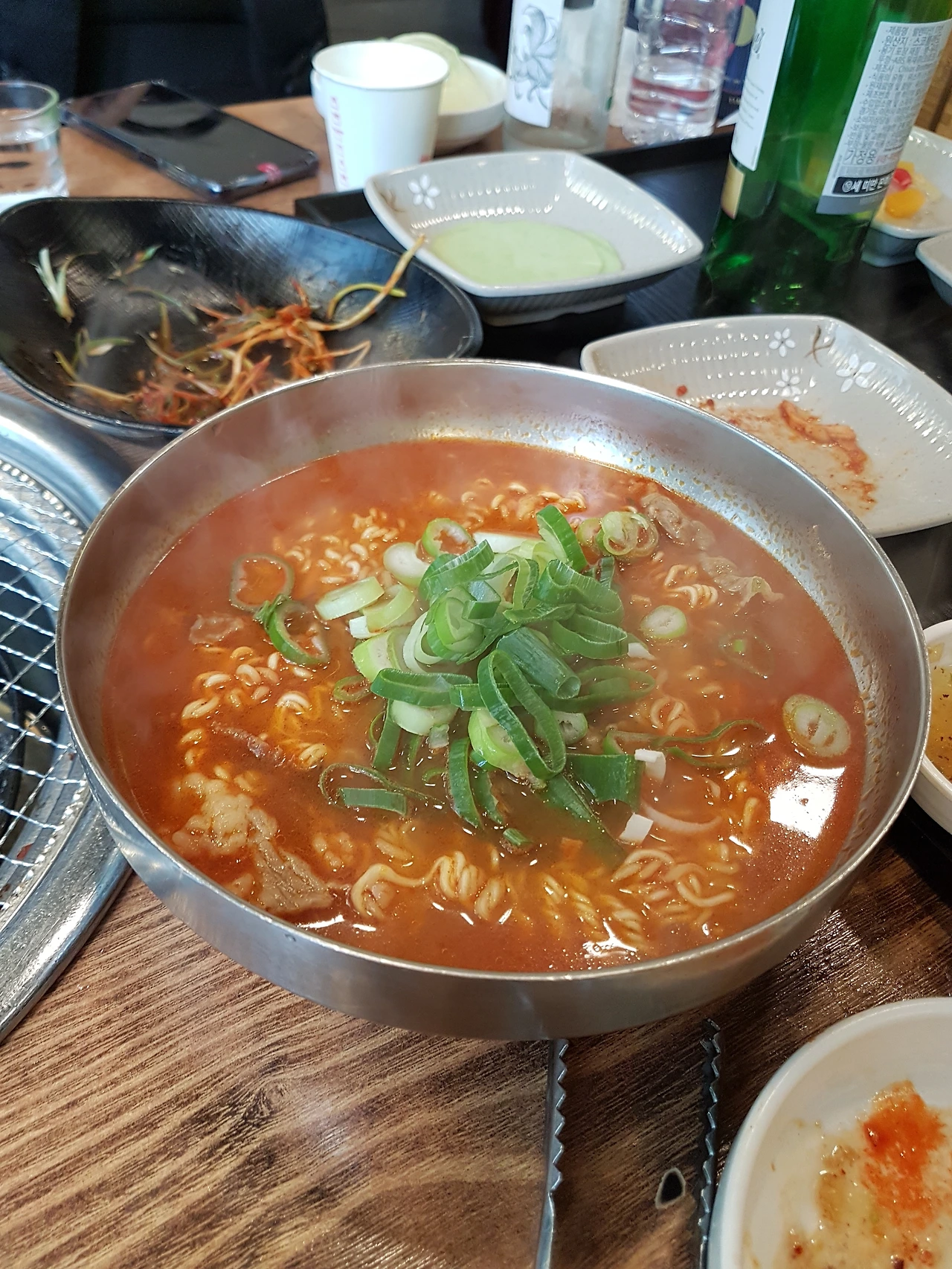 그렇게 공깃밥은 안 먹고, 특수 부위 고기를 한 팩 더 먹고는 마무리하려는 찰나에 한 친구가 한우라면이 먹고 싶다고 해서 방점은 면으로 끝냈다.