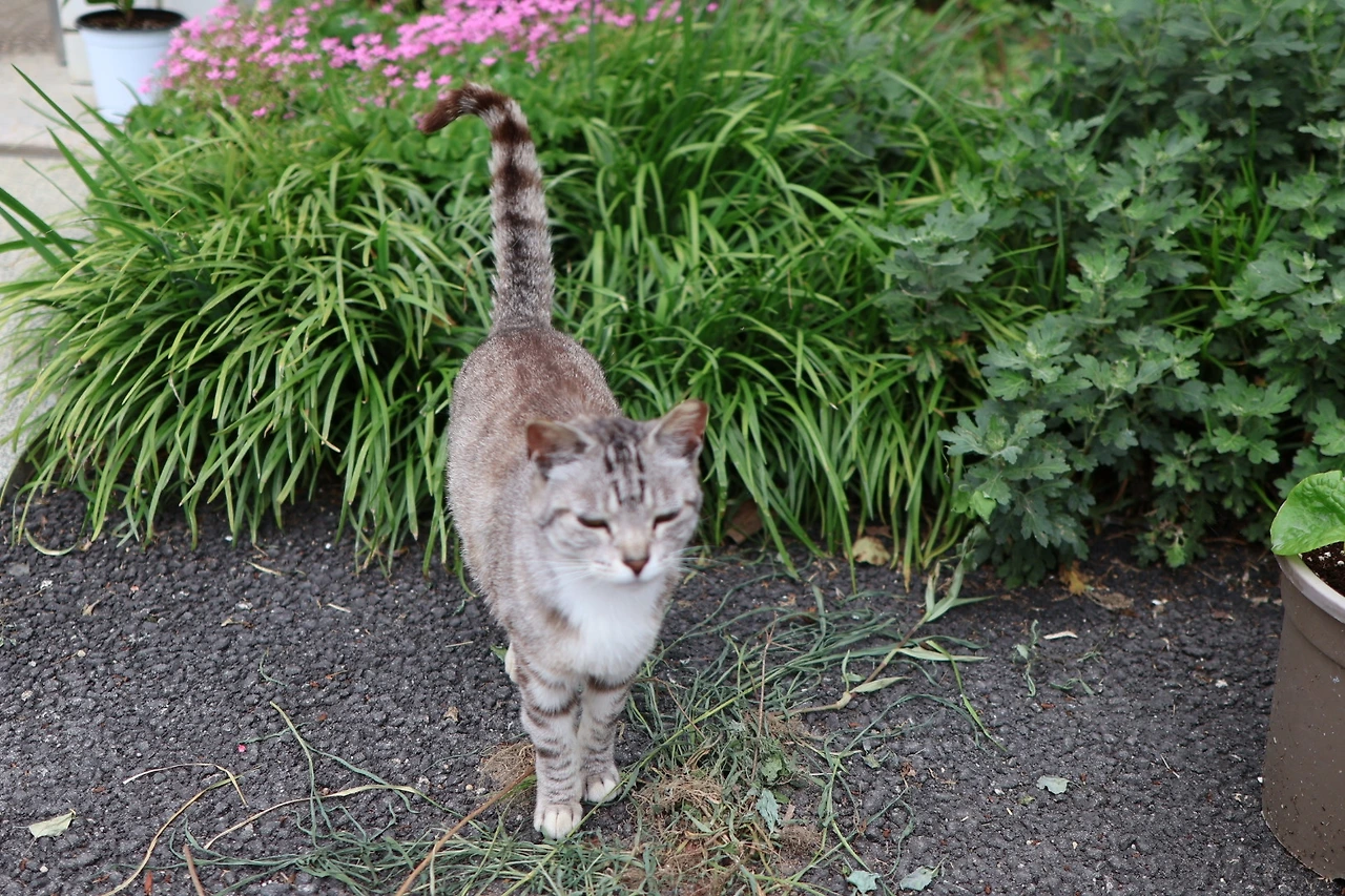그렇게 숨었으면 조용히 지켜볼 것이지. 나와 눈이 마주치자 뽕하고 걸어 나왔다. 사람에게 친근한 이 고양이는 눈을 마주치면 야옹거리면서 다가온다.