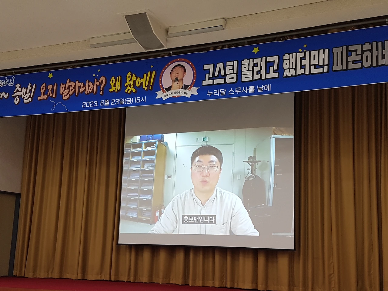 물어보는 사람의 표정에서 '너는 꼭 갈 거 같아.'라고 묻는 것 같았다. 평소에는 형식적으로 물었는데, 내용을 보니 그럴만했다. 바로 충주시 홍보맨 김선태 주무관이 온다는 것이었다. 평소에 홍보에 관심이 많았고, 글까지 쓰고 있으니, 어른들도 납득하시고는 곱게 보내주셨다.