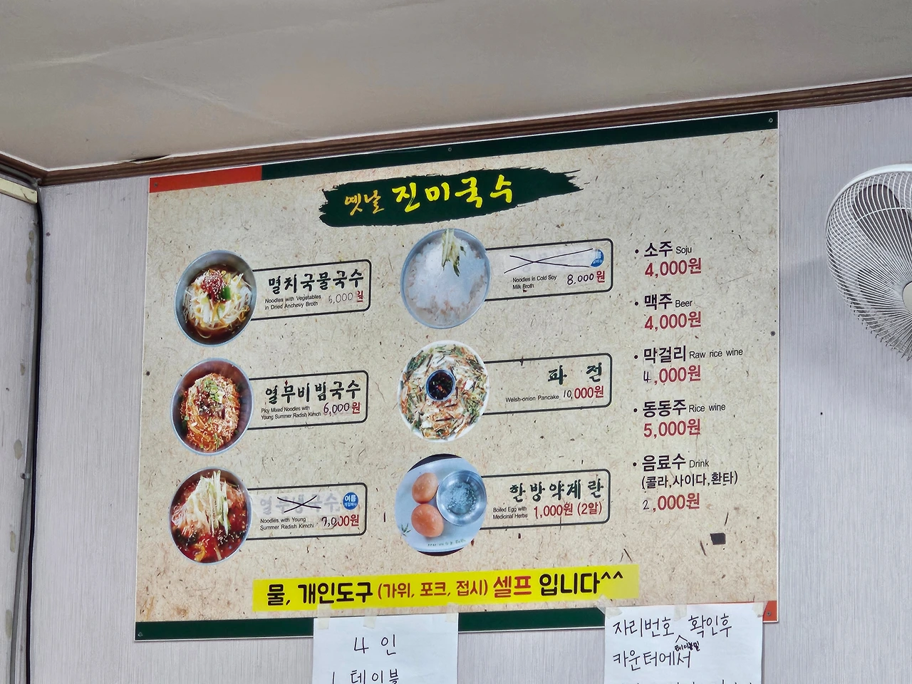 비빔이냐? 잔치국수냐? 그 조차도 힘들 땐. 무작정 도전을 해보는 방법 밖에 없었다.문을 열고 들어간 <진미국수>에서는 고전적인 상에 전문적인 직원들의 안내가 기다렸다.