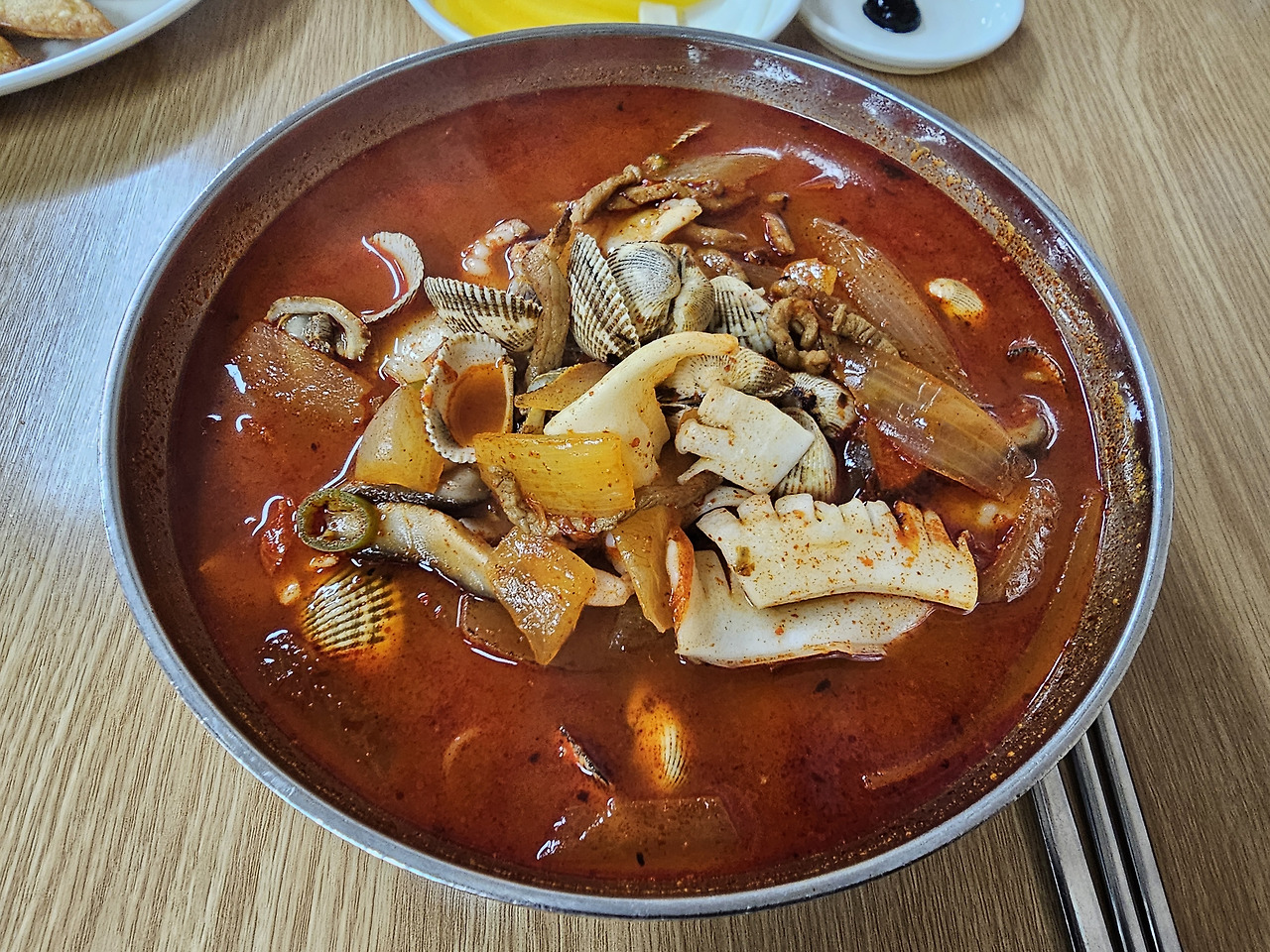 <향미각>에서 좀 특이한 메뉴 꼬막짬뽕이었다. 보기에도 무척 매워 보였지만, 자주 보는 홍합이 아닌 꼬막이라서 한 번은 먹어 보고 싶었다. 짬뽕은 홍합이라는 편견을 과감히 깨버린 내륙 어느 대학병원 앞 중국집의 메인 메뉴는 무척 흥미로웠다.