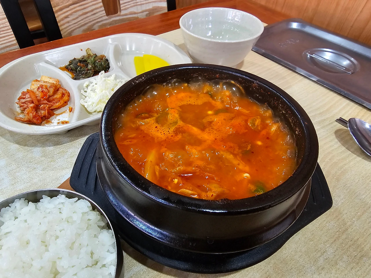 그리고 여행의 뜀뛰기 중에 식사는 당연히 김밥천국이었다. 그중에서 최애 메뉴는 참치찌개였다. 일단 식사를 할 수 있다는 장점과 더불어 버스를 타고 생긴 멀미를 뚝 털어트리기 위해서는 이만한 매콤함과 칼칼함은 따라갈 음식이 없었다.