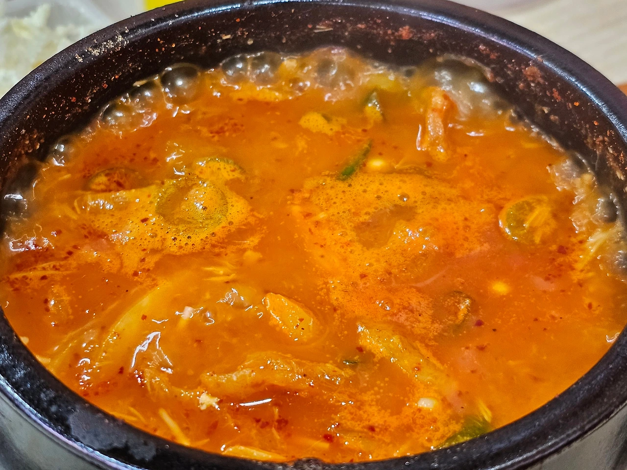 뻘건 국물에 뚝배기에 막 나온 참치찌개는 보글보글 열기를 담았다. 거기엔 고추와 양파 대파 같은 채소와 김치와 떡국 떡과 바닥에 잘 모셔진 참치가 숟가락질을 하는 와중에 다양한 맛의 변화를 주었다. 아마도 그 맛은 식당 특유의 MSG 맛이라고 평가 절하하는 사람들이 있지만, 난 그 맛이 좋았다.