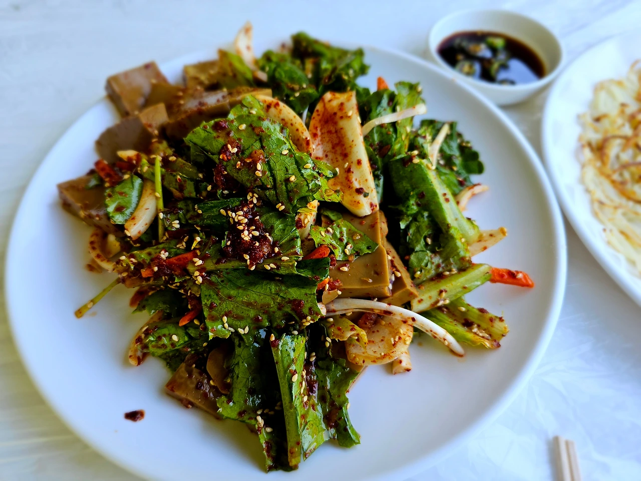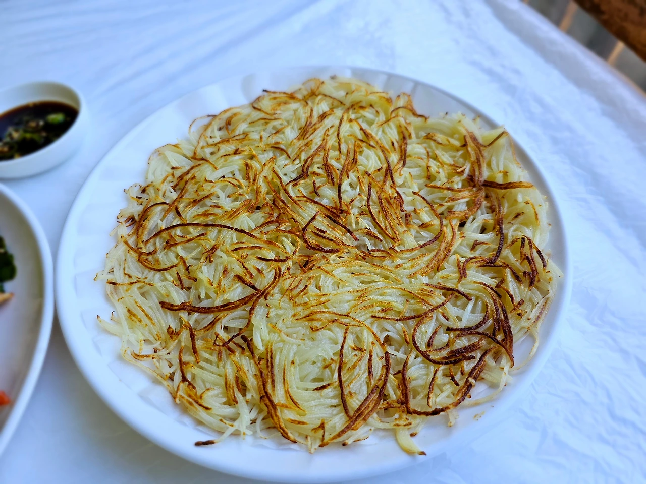 그래서였을까? 허기진 배가 도토리묵과 감자전을 원했다. 상큼한 야채와 도토리묵이 버무려진 한 접시와 잘게 썰린 감자가 바삭하게 구워진 전으로 바쁘게 손이 갔다.