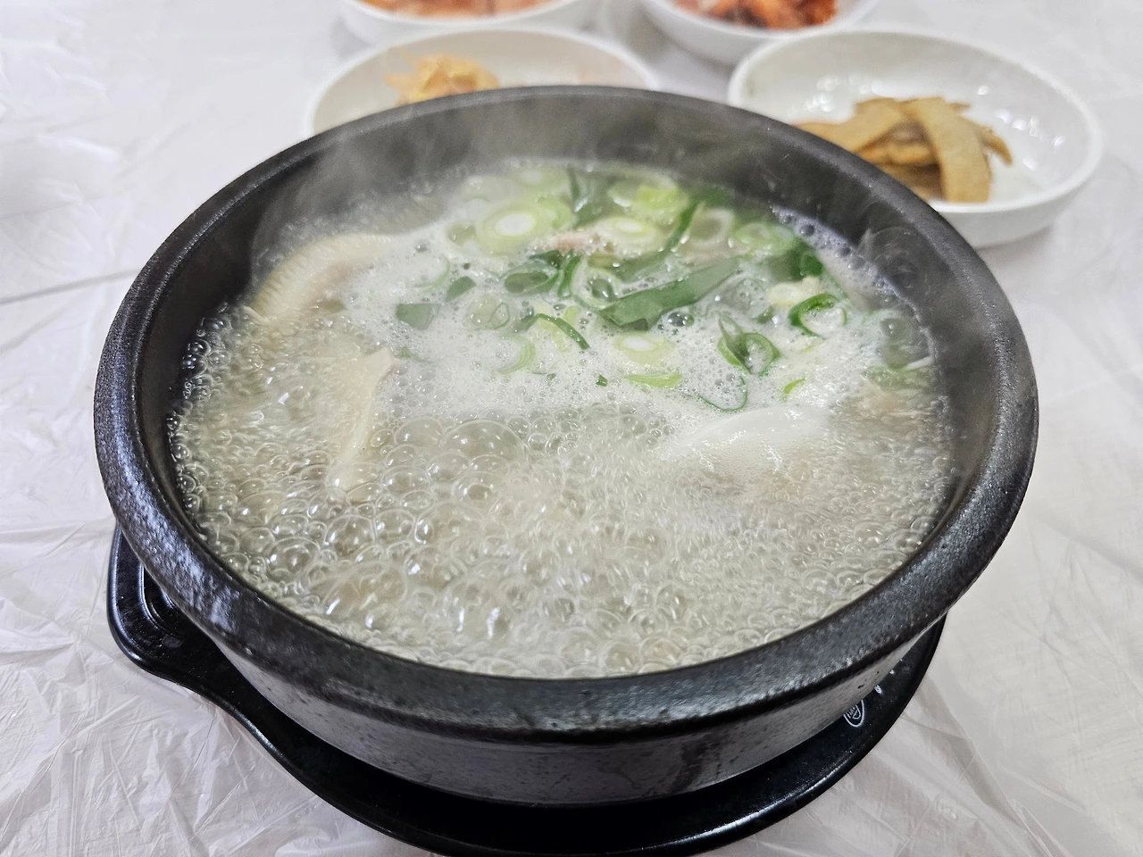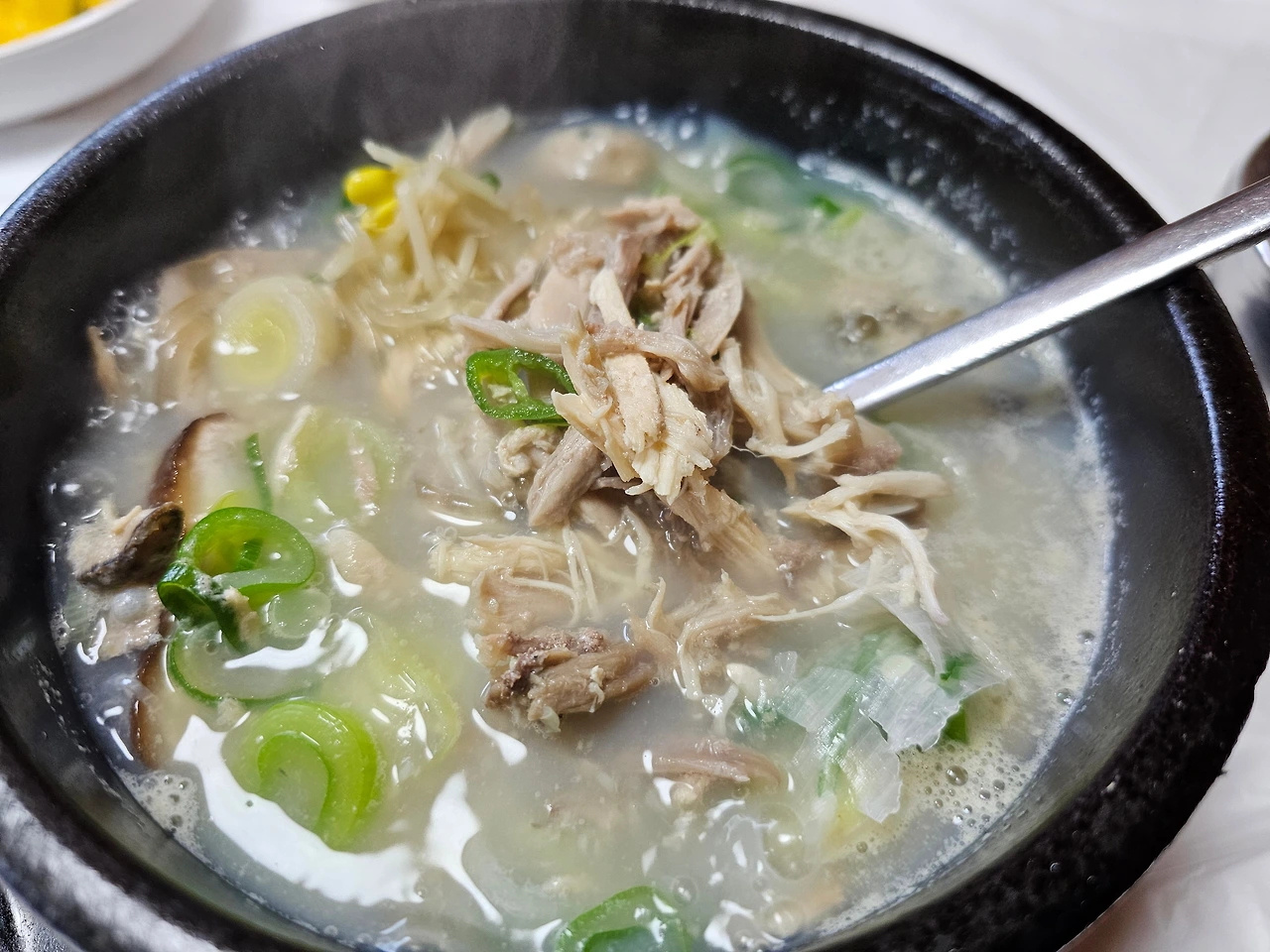 어쩐지 나는 테이블에서 아무것도 못하고 있었다. 주문한 식사로 닭곰탕 뚝배기가 나오고, 무엇이 나왔는지 모를 만큼 보글보글 뜨거운 상태로 나오는 음식.