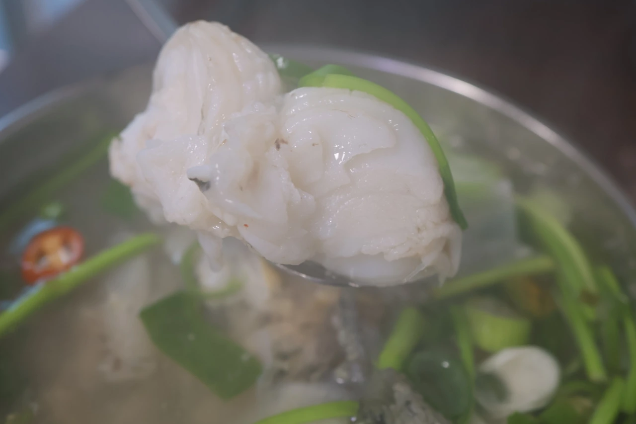 역시 그 유명한 겨울에 먹는 물메기탕은 어떤 맛일까? 일단 국물은 개운하게 시원한 맛이다. 그리고 두툼한 살은 부들부들 입에서 그냥 녹는다는 표현이 정확했다. 분명 굵직한 살점이 몇 조각 있었는데, 숟가락으로 몇 번 저어버리니 살이 흩어져 버렸다. 다른 사람 표현처럼 뼈만 없으면 그냥 마신다는 표현이 정확할지도 모르겠다.