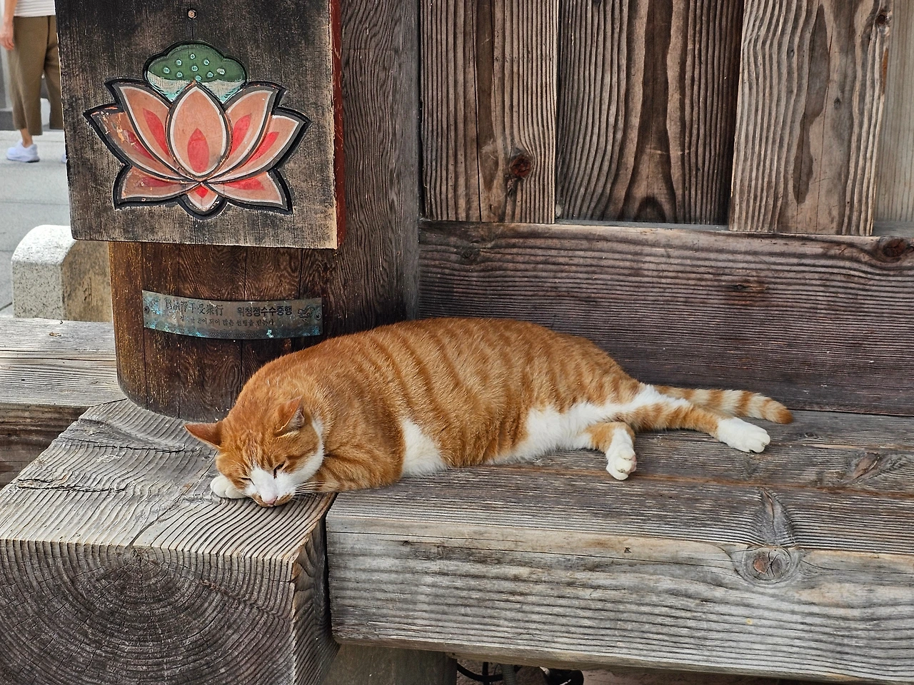 화엄사 경내로 들어서니 화엄사의 고양이 한 마리가 궁둥이 팡팡을 당하고 있었다. 제법 까칠하다는 녀석의 이름은 '삼전'이었다. 덩치가 제법 나가는 노량냥이였는데, 목에 이름표까지 달고 있는 것 보니 절에서 키우는 고양이가 맞는 것 같았다.