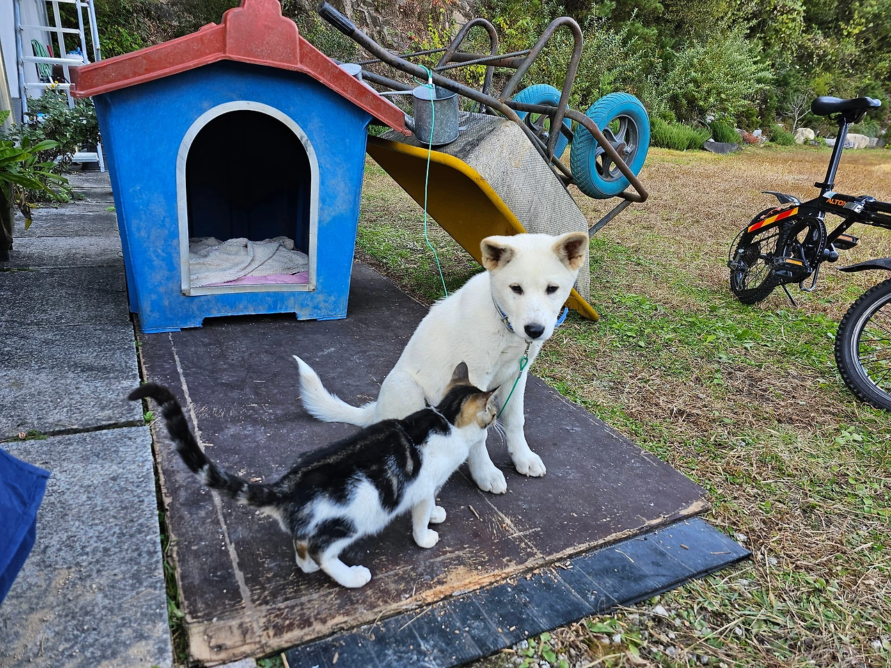 간혹 고양이가 있는데도 개가 집에 있었는데, 순딩한 멍멍이는 고양이 가족이 놀아달라면 집도 빼앗길 정도로 순하다는 어르신의 자랑 중에도 개와 고양이는 친근하게 서로를 챙기고 있었다.