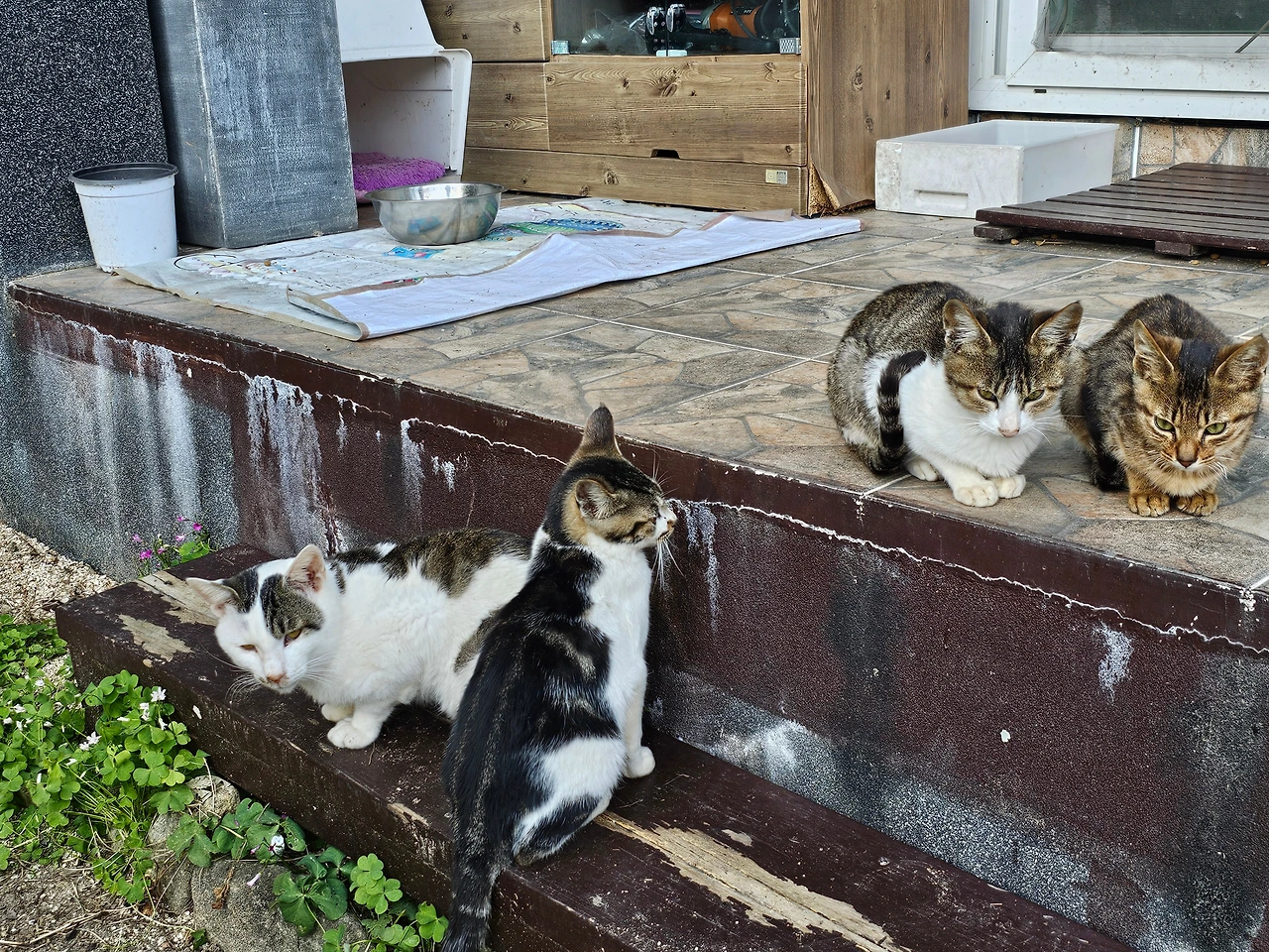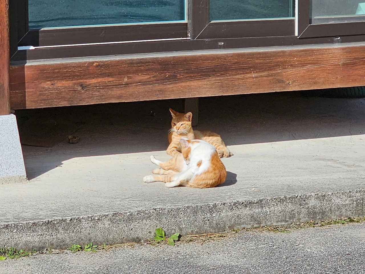 이렇게 집에서 만나는 아이들도 있지만, 시골 고양이들은 적당한 마을 회관 공터에서도 자리를 잡고 있다. 아마도 어르신들이 밥도 챙겨주고, 새끼가 태어나면 보호를 해준다는 것을 본능적으로 알고 있어서랄까? 마을회관 공터에는 유독 고양이들이 많이 보인다.