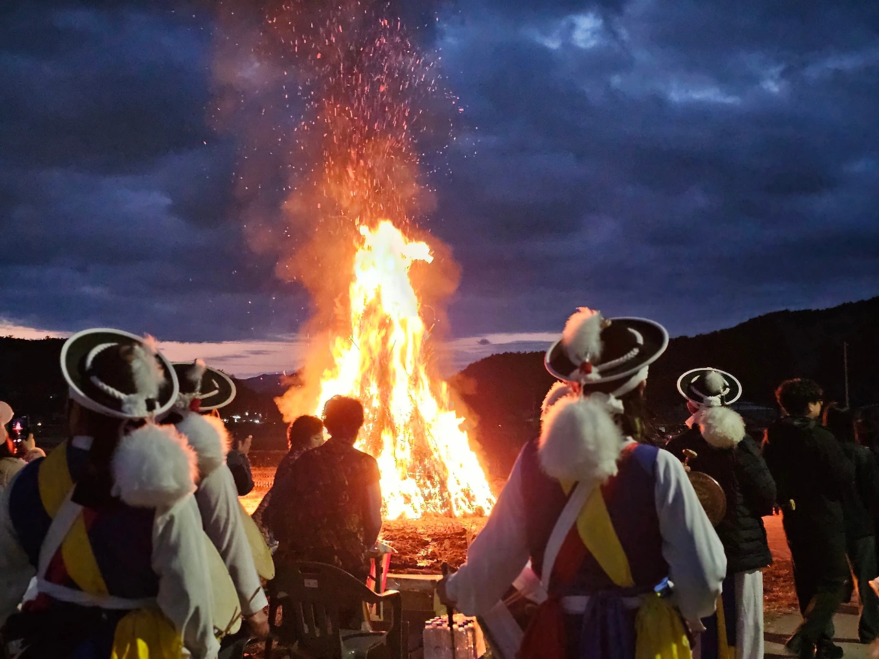 아마 구름이 가득해서 대보름의 달은 보기 힘들겠다 싶으니 활활 타오르는 달집을 잠시라도 포착하기 위해서 핸드폰 시간만 보던 때. 불이 붙고는 어두운 하늘을 쏘오 올라가는 불기둥이 생겼다. 여기저기서 환호성이 터지고, 아마 저마다의 소원을 빌었을 것이다.