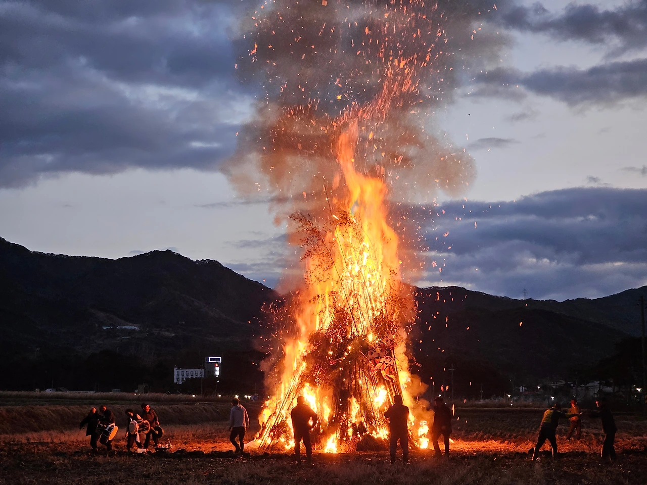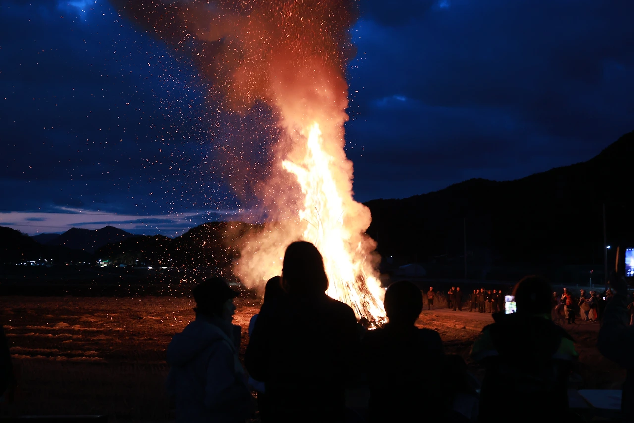 하지만 이작가는 퇴근을 하고도 혹시나 불이 날까 싶어 비상 인원으로 달집 태우기를 감시하러 간 이주무관이었다. 결국 이작가와 이주무관의 중간을 잡으며 난 자연스럽게 사진을 찍었다. 어쩌면 야간 사진을 찍을 수 있는 좋은 경험을 쌓는다는 마음으로 해질 무렵부터 마을 주민들과 음식을 나누며 밤이 오길 기다렸다.