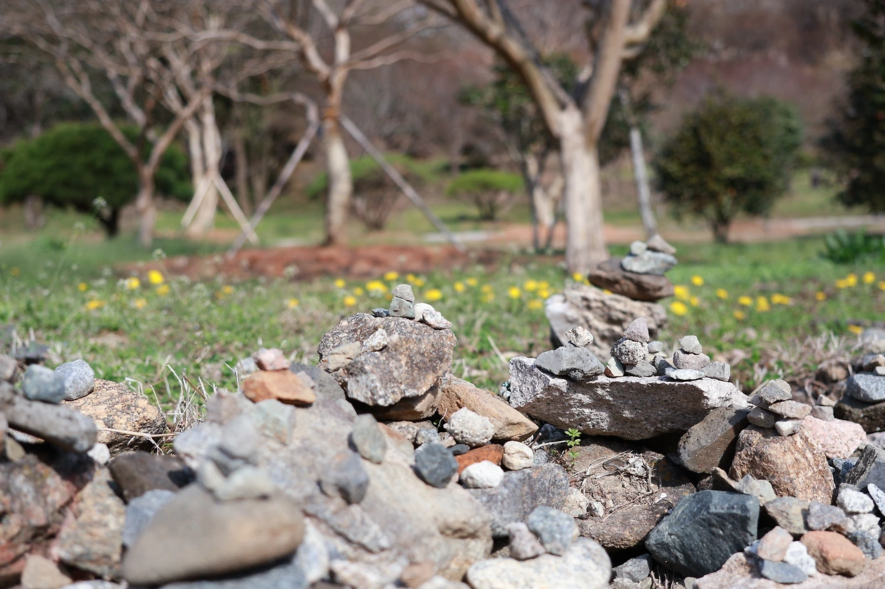 그나마 입구부터 걸어가면서, 카메라로 꽃과 풍경을 담아 보면서 생각한다. 저 돌탑을 쌓은 사람들의 기도는 주로 건강이었겠지? 나는 그럼 뭘 해야 할까.