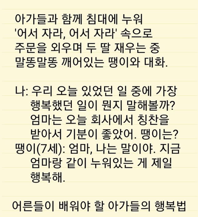 빨리 잠들기를 바라는 엄마와 더 깨어있고 싶은 아이들